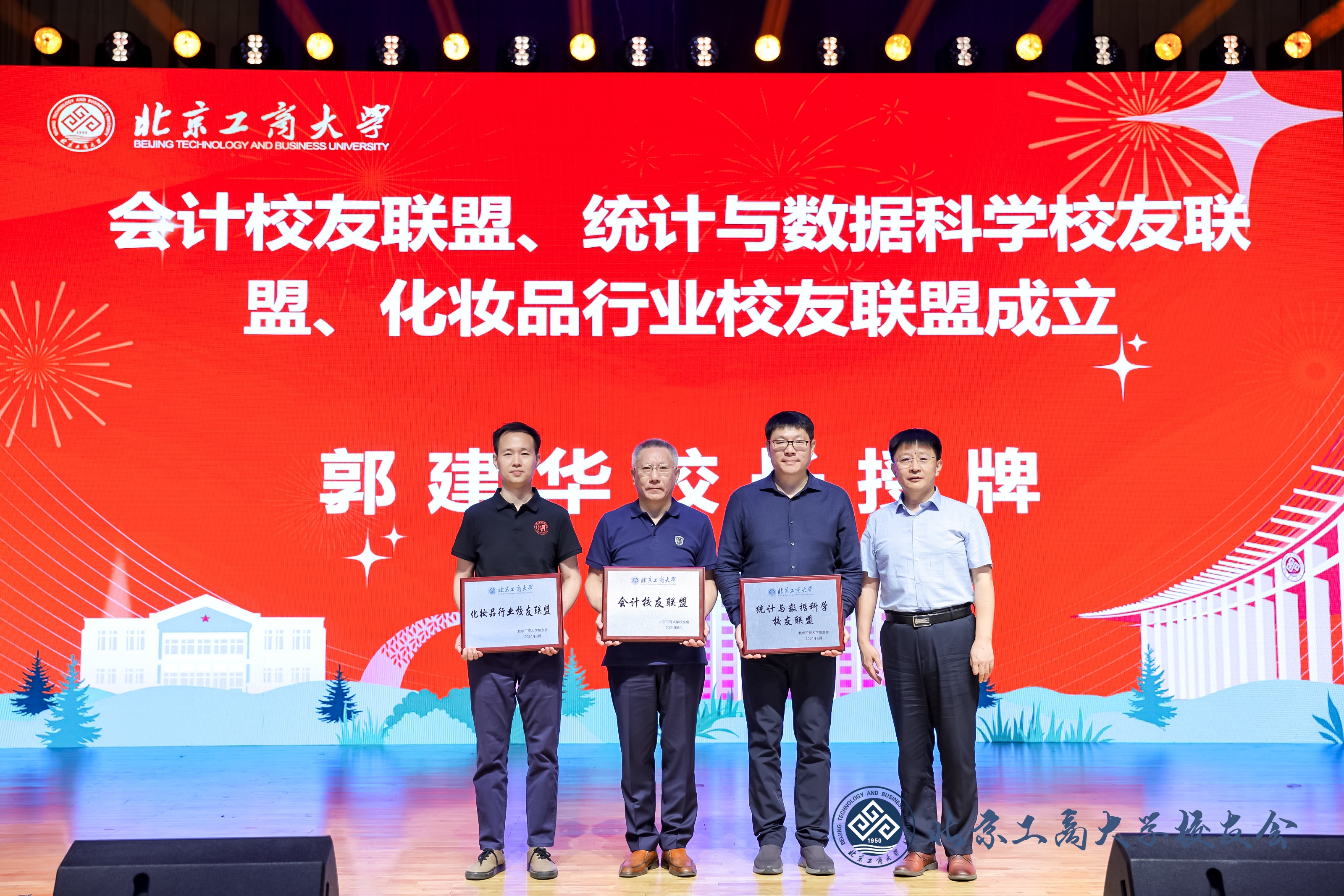為發(fā)揮校友專業(yè)和行業(yè)優(yōu)勢,經(jīng)學(xué)校相關(guān)專業(yè)校友聯(lián)合申請,學(xué)校研究通過,決定成立“會計校友聯(lián)盟”“化妝品行業(yè)校友聯(lián)盟”“統(tǒng)計與數(shù)據(jù)科學(xué)校友聯(lián)盟”。黨委常委、副校長毛新述宣讀《北京工商大學(xué)關(guān)于成立會計校友聯(lián)盟、化妝品行業(yè)校友聯(lián)盟、統(tǒng)計與數(shù)據(jù)科學(xué)校友聯(lián)盟的決定》。