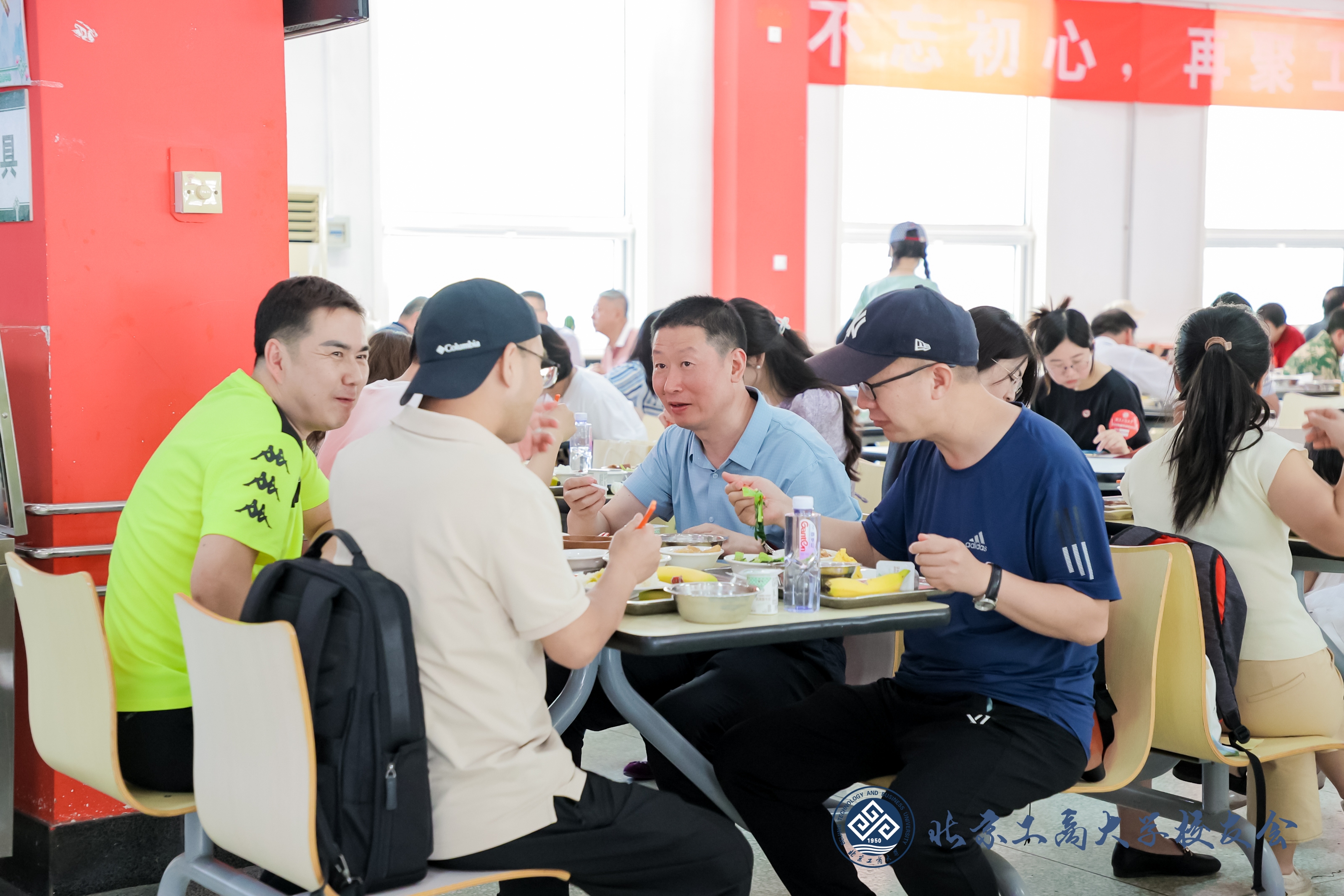 中午,食堂內(nèi)也熱鬧非凡,各學(xué)院組織校友在相應(yīng)食堂錯峰用餐,昔日的同窗一起用餐,讓大家回憶起了在校的青蔥歲月。