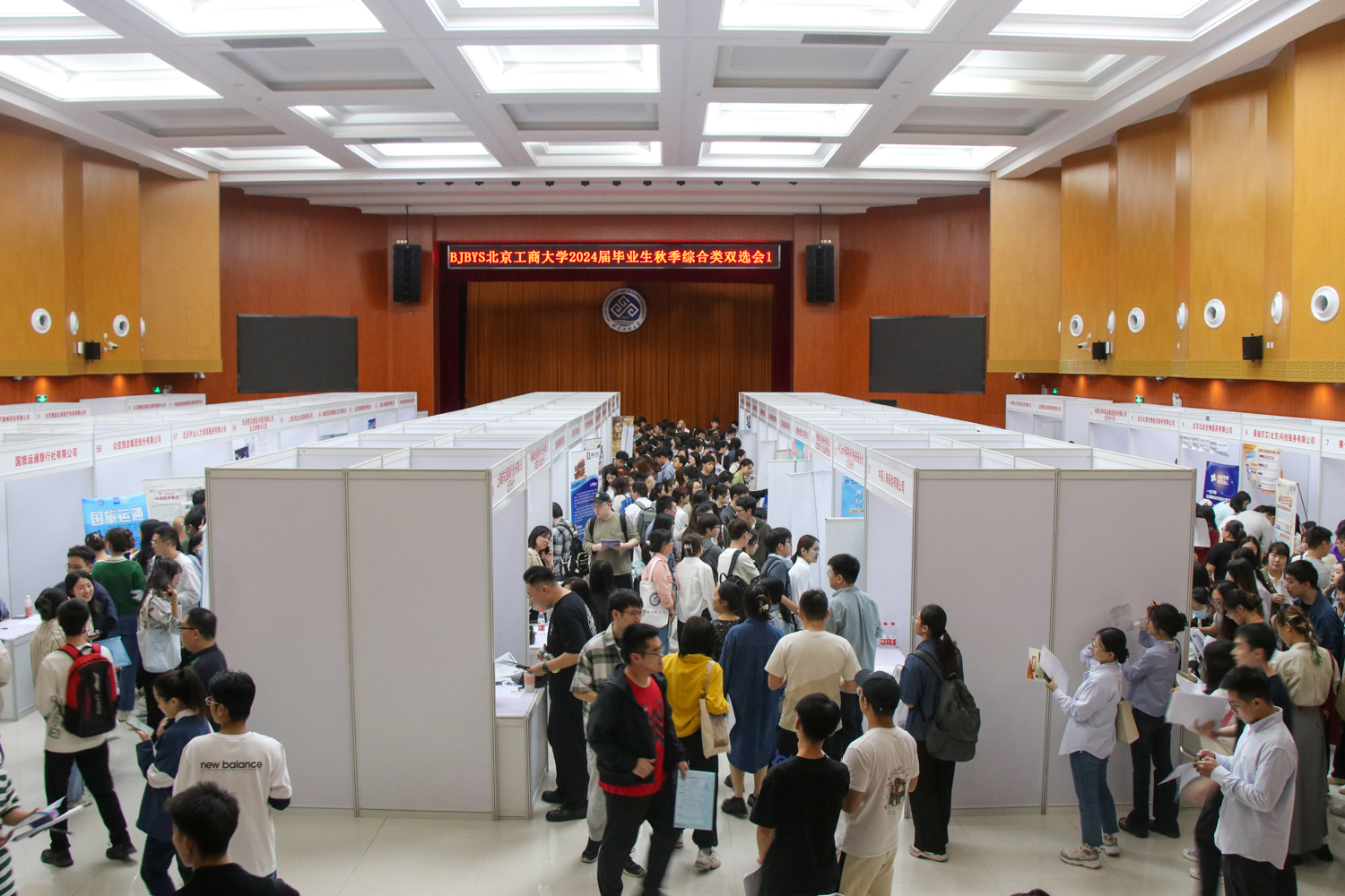 為助力畢業(yè)生搶抓秋招關(guān)鍵期,促進(jìn)畢業(yè)生更充分更高質(zhì)量就業(yè),9月27日,學(xué)校招生就業(yè)處聯(lián)合北京高校就業(yè)指導(dǎo)中心在阜成路東區(qū)禮堂舉辦“BJBYS成功就業(yè)——北京工商大學(xué)2024屆畢業(yè)生秋季綜合類雙選會(huì)”(首場)。北京高校大學(xué)生就業(yè)創(chuàng)業(yè)指導(dǎo)中心主任匡校震、副主任蘇秀麗一行蒞臨,黨委常委、副校長左敏到場指導(dǎo),學(xué)校招生就業(yè)處、各學(xué)院相關(guān)負(fù)責(zé)人到場參與。