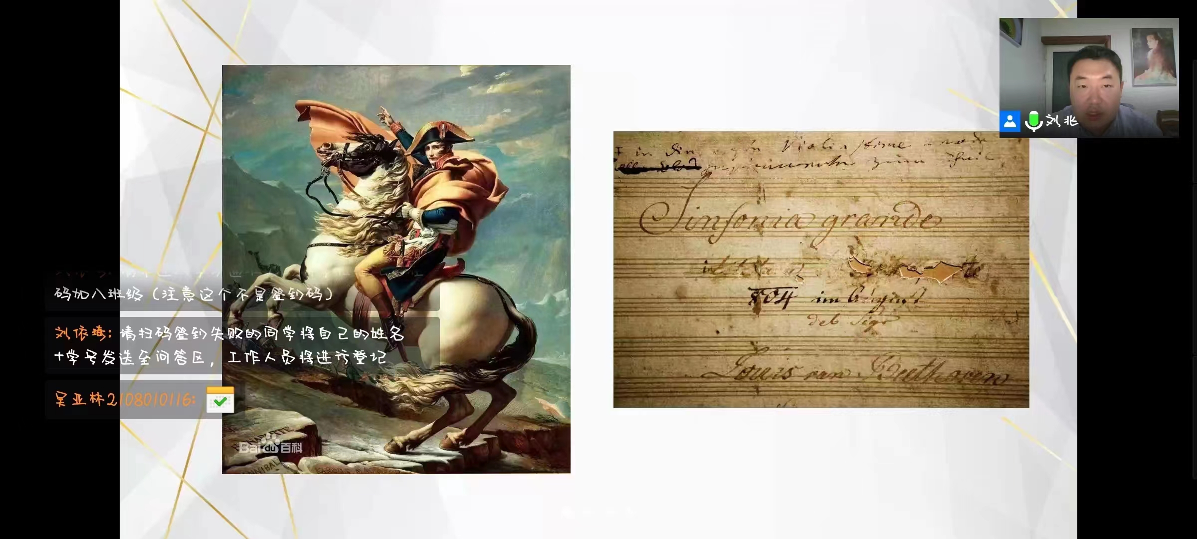 5月6日,我校體育與藝術(shù)教學(xué)部講師劉兆以“古典音樂中的戰(zhàn)爭與和平”為題展開主題講座。劉兆通過貝多芬的《降E大調(diào)第三(英雄)交響曲》,肖邦的《降A(chǔ)大調(diào)(英雄)波蘭舞曲》,肖斯塔科維奇的《第七“列寧格勒”交響曲》和冼星海、殷承宗的《黃河鋼琴協(xié)奏曲》四個作品,講述了它們誕生的歷史背景,并介紹了各個音樂家創(chuàng)作其過程和背后的精神內(nèi)涵。