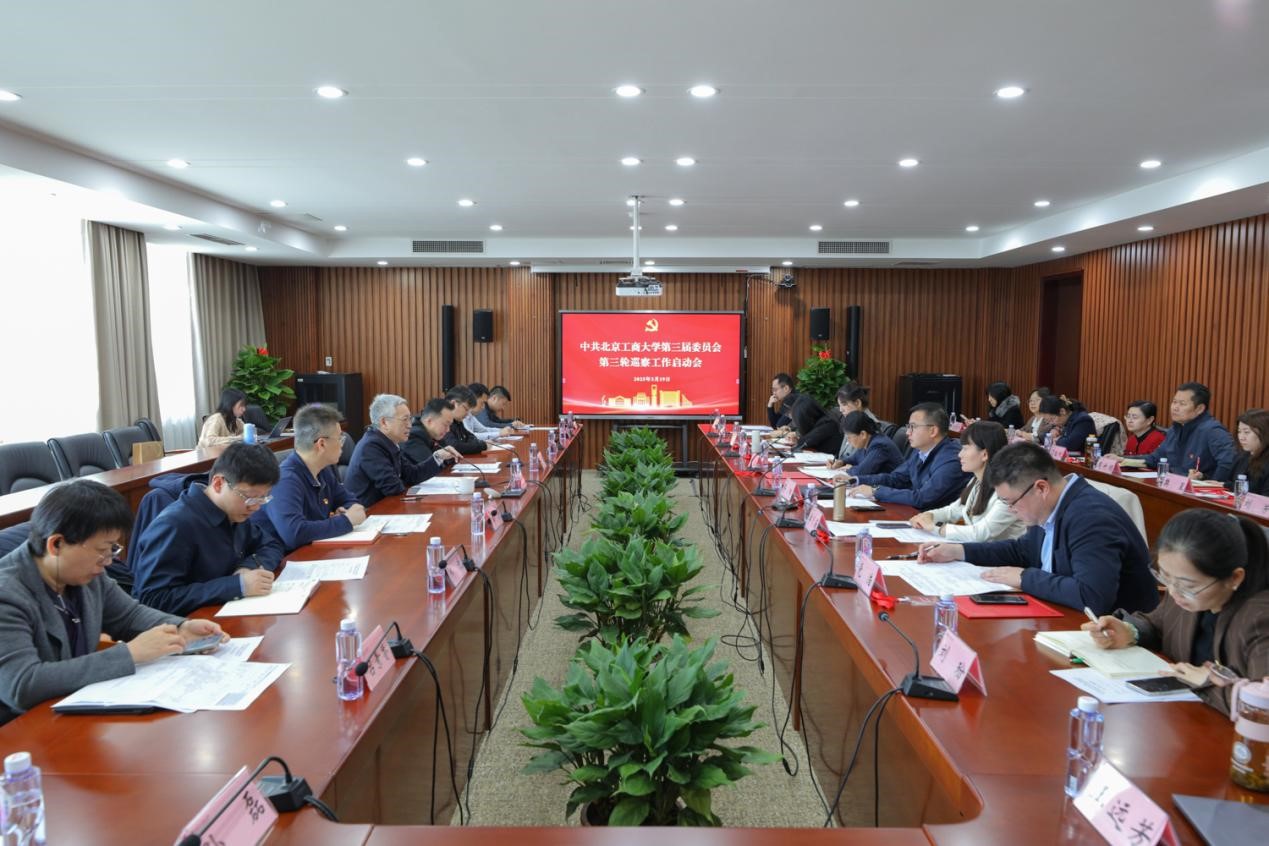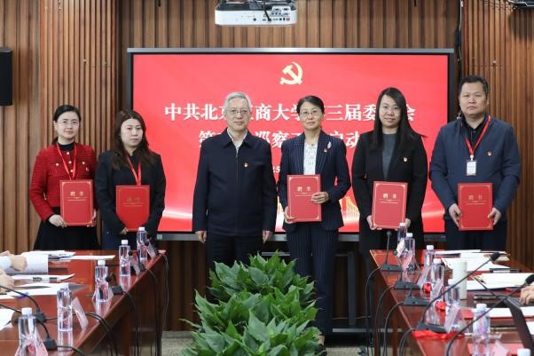 李中奇宣讀了《中共北京工商大學第三屆委員會關于第三輪校內巡察工作巡察組授權任職及任務分工的決定》。本輪巡察共派出3個巡察組,采用“一托一”方式,于3月下旬至5月分別對機關黨委、公共事務處黨總支、輕工科學與工程學院黨委開展巡察。