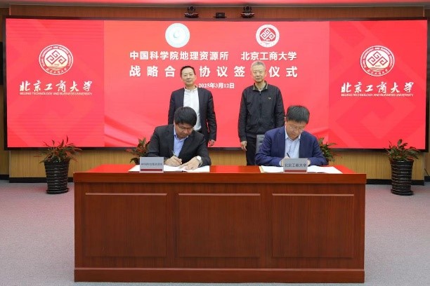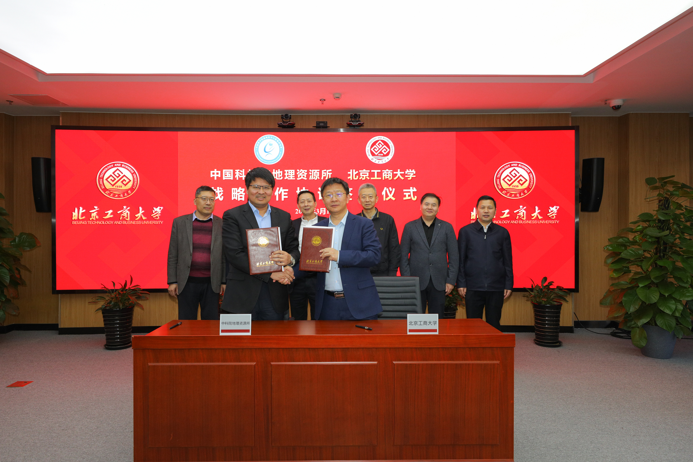 孫福寶在致辭中表示,地理科學與資源研究所肩負著中國科學院地理資源領域搶占科技制高點的歷史使命。近年來,地理資源所全面貫徹黨中央、國務院對科技創(chuàng)新提出的新部署新要求,持續(xù)強化自身使命定位,結合研究所“十四五”創(chuàng)新發(fā)展任務,充分發(fā)揮研究所在國內資源環(huán)境研究機構中的領先發(fā)展優(yōu)勢,努力產出關鍵性、原創(chuàng)性、引領性重大科技成果,創(chuàng)新發(fā)展各項工作邁上新臺階。北京工商大學充分發(fā)揮食品、商科、輕工學科優(yōu)勢,科研工作扎實落地、應用廣泛。希望雙方加深務實合作,不斷推進協(xié)議合作內容,特別是在人才培養(yǎng)、科研合作等方面深入交流合作,建立長效機制,推動科教融合,為區(qū)域經濟社會發(fā)展貢獻力量。
