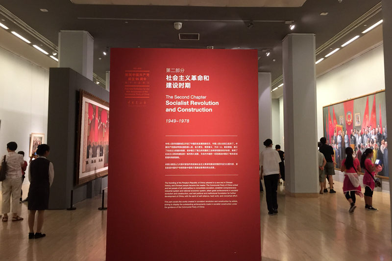 隨后,老師們一同來(lái)到中國(guó)美術(shù)館,共同觀看了由文化部主辦、中國(guó)美術(shù)館承辦的“慶祝中國(guó)共產(chǎn)黨成立95周年美術(shù)作品展覽”。展覽匯集我國(guó)幾代美術(shù)家在不同歷史時(shí)期創(chuàng)作的優(yōu)秀作品300余件,以中國(guó)美術(shù)館館藏作品為主,包括部分其他美術(shù)機(jī)構(gòu)的藏品和新創(chuàng)作品,涵蓋了中國(guó)畫(huà)、油畫(huà)、版畫(huà)、雕塑、年畫(huà)、連環(huán)畫(huà)、宣傳畫(huà)、漆畫(huà)等多個(gè)品種。展覽圍繞愛(ài)黨愛(ài)國(guó)愛(ài)社會(huì)主義的主題,分為新民主主義革命時(shí)期(1921-1949)、社會(huì)主義革命和建設(shè)時(shí)期(1949-1978)、改革開(kāi)放和社會(huì)主義現(xiàn)代化建設(shè)新時(shí)期(1978至今)三個(gè)篇章,以恢宏壯觀的氣勢(shì)和異彩紛呈的畫(huà)卷,回顧和展現(xiàn)了95年來(lái)中國(guó)共產(chǎn)黨團(tuán)結(jié)和帶領(lǐng)全國(guó)各族人民進(jìn)行革命、建設(shè)、改革的光輝歷史和豐功偉績(jī)。