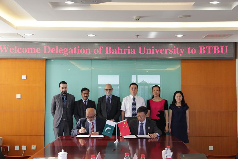 會談后,孫寶國校長和坦維爾•菲茲校長分別代表兩校簽署了北京工商大學和巴基斯坦巴利亞大學校際合作備忘錄。