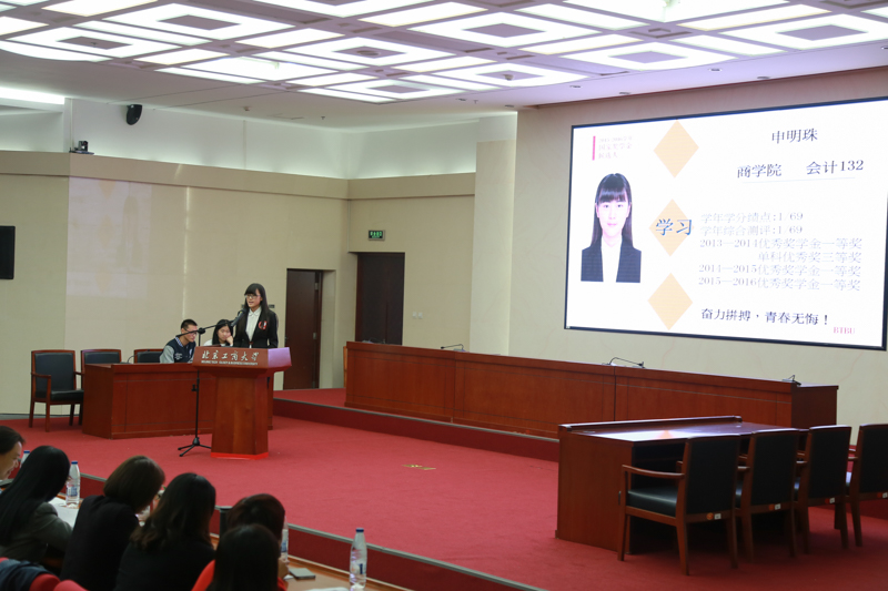 在陳述環(huán)節(jié),每人3分鐘介紹和展示了其思想表現(xiàn)、學(xué)業(yè)成績、社會服務(wù)、競賽獲獎等方面的情況和取得的成績,31名申請人落落大方,充滿自信,盡顯工商學(xué)子風(fēng)采。他們中有在各類國際競賽中斬獲大獎的“競賽達(dá)人”,也有學(xué)分績點達(dá)到4以上、多門數(shù)學(xué)課程100分的“超級學(xué)霸”,還有在志愿服務(wù)、學(xué)生工作中成績斐然的優(yōu)秀學(xué)生干部,更有屢屢在學(xué)術(shù)期刊發(fā)布論文的“科研新星”。不少申請人已經(jīng)獲得進(jìn)入北京大學(xué)、中科院研究生院、中央財經(jīng)大學(xué)、北京交通大學(xué)等國內(nèi)外優(yōu)秀院校進(jìn)一步深造的機會,攻讀碩士甚至直讀博士學(xué)位。可謂群星璀璨,耀眼奪目。