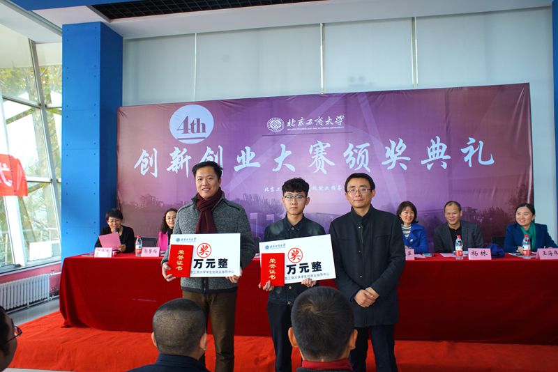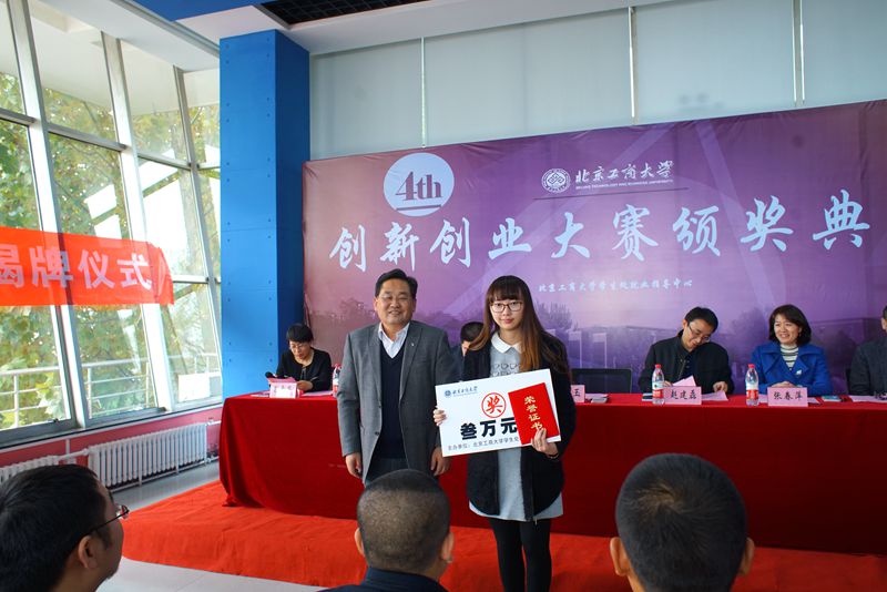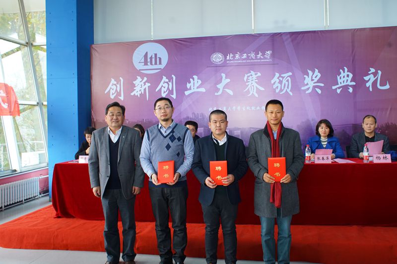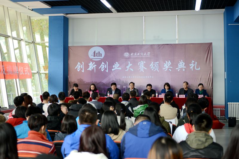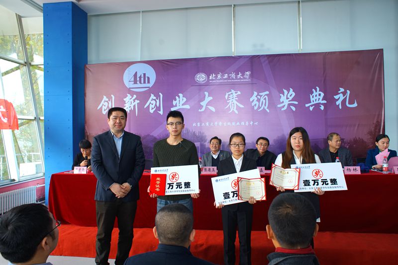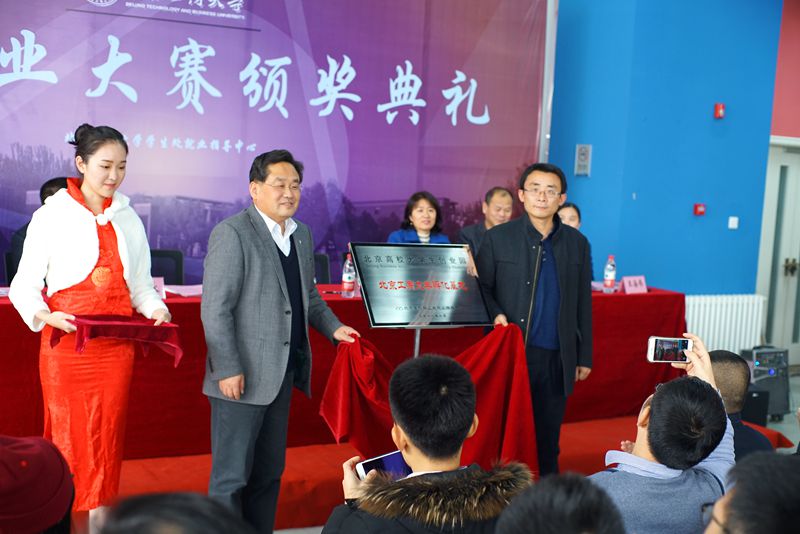 11月9日,我校第四屆創(chuàng)新創(chuàng)業(yè)大賽頒獎儀式暨北京高校大學(xué)生創(chuàng)業(yè)園北京工商大學(xué)孵化基地簽約及揭牌儀式、我校與北京創(chuàng)新谷科技孵化器校企合作揭牌儀式在良鄉(xiāng)校區(qū)學(xué)生創(chuàng)業(yè)園舉行。校黨委副書記張德玉、北京市教委學(xué)生處副處長趙建磊、北京創(chuàng)新谷科技孵化器有限公司副總裁王焱、校黨委宣傳部部長張春萍、文科實(shí)踐中心主任郭馨梅、學(xué)生處處長呂素香、就業(yè)指導(dǎo)中心主任楊林、校團(tuán)委書記王海偉出席了此次頒獎儀式。