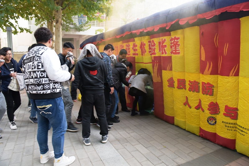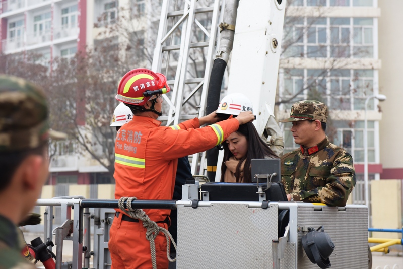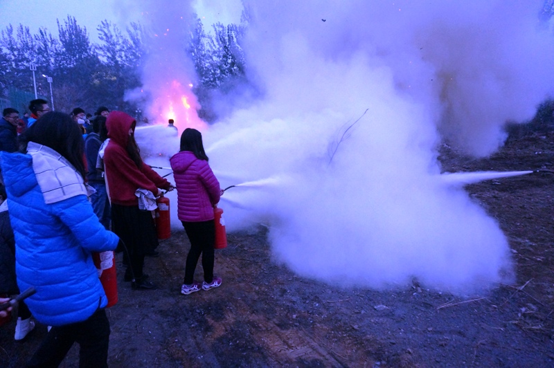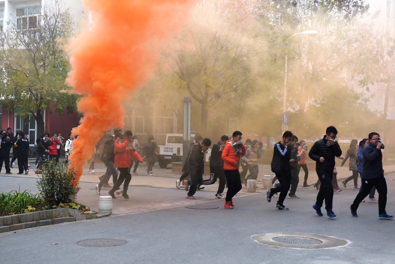 16:30,隨著張?jiān)鸥毙iL(zhǎng)的一聲令下,消防演習(xí)正式開(kāi)始。此時(shí),8號(hào)樓警報(bào)鳴響,煙霧滾滾,800余名新生分別從各自宿舍迅速而有序地疏散到集結(jié)區(qū)域。參演學(xué)生根據(jù)在消防培訓(xùn)中學(xué)到的知識(shí),以毛巾掩住口鼻,彎腰快步地從煙霧中撤離到指定地點(diǎn)。模擬現(xiàn)場(chǎng)非常逼真,疏散過(guò)程緊張而有序。現(xiàn)場(chǎng)還設(shè)置了消防逃生體驗(yàn)帳篷、高空云梯救援、體驗(yàn)穿戴消防戰(zhàn)斗裝備等。消防戰(zhàn)士還講解和示范了滅火器使用方法。隨后,保安人員點(diǎn)燃了火堆,參演的師生親身體驗(yàn)了用滅火器滅火的實(shí)際操作,取得了良好的演練效果,也達(dá)到了預(yù)期的教育目的。