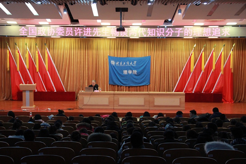 11月28日,理學(xué)院特邀全國政協(xié)委員許進(jìn)來到良鄉(xiāng)校區(qū)作講座,與同學(xué)們講述他祖父許德珩和姑父鄧稼先的生平事跡,暢談兩代知識分子的理想與追求。理學(xué)院良鄉(xiāng)校區(qū)2015、2016級全體本科生及部分教師參加了此次講座。