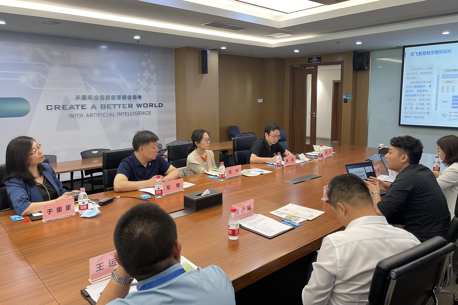 學(xué)校調(diào)研團(tuán)參觀了科大訊飛展廳,體驗(yàn)了科大訊飛核心技術(shù)及行業(yè)應(yīng)用,聽(tīng)取了訊飛A.I.助力高校智慧教學(xué)發(fā)展的應(yīng)用成果匯報(bào)和人才需求情況。