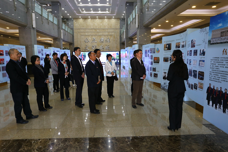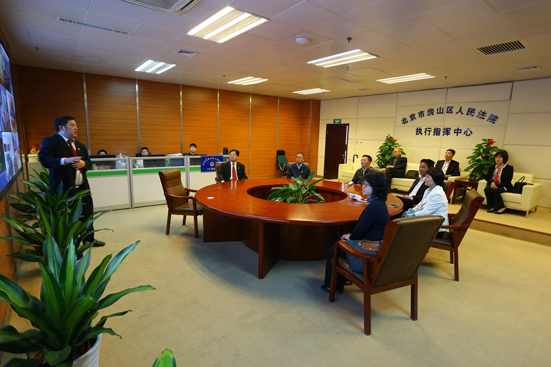 簽字儀式前我校一行人參觀了房山區人民法院的“系民心 鑄法魂”文化建設主題展、陽光訴訟服務大廳和執行指揮中心,觀看了院史記錄片《前進中的房山法院》和自制微電影《法官日記》,了解了近年來房山法院在黨建工作建設、職業隊伍建設、精神文明建設等方面做出的努力與取得的成績。