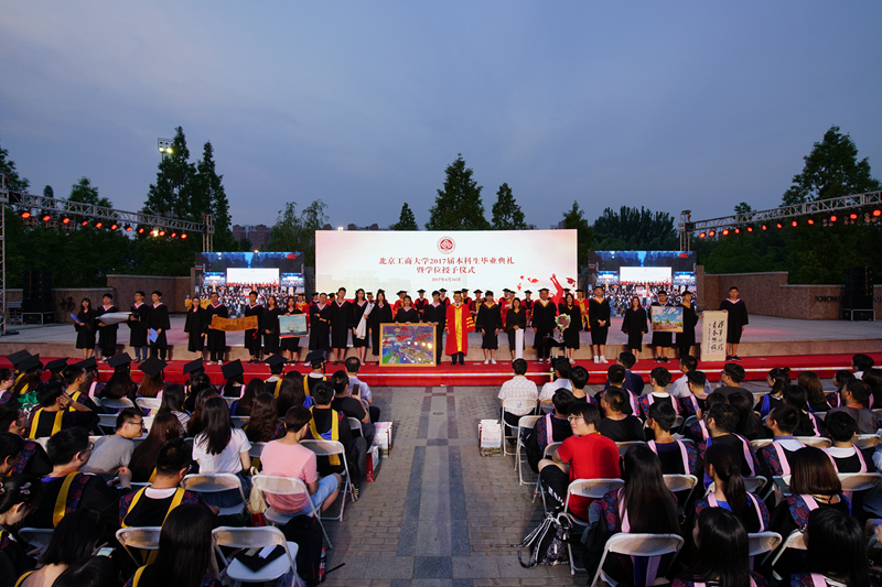 學(xué)位授予儀式莊嚴(yán)而隆重。穿著畢業(yè)服的學(xué)子們從容地走到臺(tái)前,迎接這一難忘的時(shí)刻。他們帶回了一份沉甸甸的證書,送走了四年勤奮苦讀的歲月;這些變化不僅僅是學(xué)士帽上隨風(fēng)飄揚(yáng)的流蘇,還有他們不斷提升的人生境界、不斷充實(shí)的內(nèi)心以及即將實(shí)現(xiàn)的理想。在北工商的日子已經(jīng)過(guò)去,希望他們乘著夢(mèng)想的翅膀,飛得更高更遠(yuǎn)。