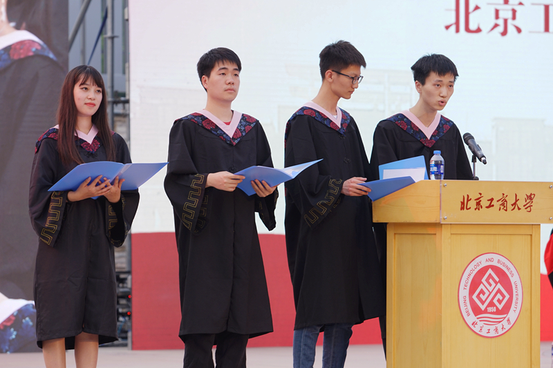 副校長(zhǎng)李朝鮮宣讀了《北京工商大學(xué)關(guān)于2017屆本科生準(zhǔn)予畢業(yè)及學(xué)位授予的決定》,黨委副書記董竹娟宣讀了《北京工商大學(xué)關(guān)于表彰2017屆優(yōu)秀本科畢業(yè)生的決定》。今年,我校共有2617名本科生準(zhǔn)予畢業(yè),2556名本科生獲得學(xué)士學(xué)位,140人獲得“北京工商大學(xué)優(yōu)秀畢業(yè)生”榮譽(yù)稱號(hào);另有138名本科畢業(yè)生榮獲“北京市優(yōu)秀畢業(yè)生”。