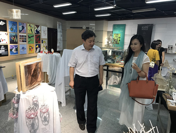 開幕式后,學校領導譚向勇、孫寶國、張德玉、方德英和嘉賓參觀了此次展覽和學術藝術周新聞學、廣告學、中文教學部等教學成果。此次三校聯展作品涵蓋了產品設計、平面設計、包裝設計、展示設計、新媒體設計等領域,有用新技術解決現實問題的奇思妙想,有傳承了“工匠精神”的傳統工藝作品,更有一些作品體現出濃厚的人文關懷,近三百余件參展作品凝聚了三校藝術類專業本科教學的成果,體現出較高的學術藝術水準并得到廣大師生的高度評價。參展領導和嘉賓還參觀了學院陶瓷藝術工作室、絲網印刷工作室、虛擬仿真實驗室,并就本科實踐教學展開互動與交流,三校學院領導充分肯定了聯展的模式,并在更廣泛的層面為今后加強本科教學的三校合作與交流達成共識。
