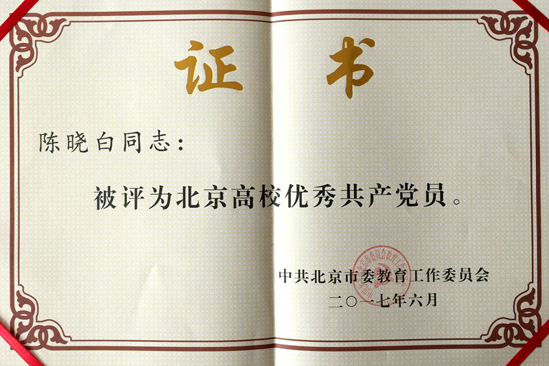 陳曉白教授入黨30年來,始終牢記黨的宗旨,將黨員的先鋒模范作用化為日常行為準則,堅持不斷進取創新。從教幾十年,始終以飽滿的熱情、深厚的感情、認真負責的態度和高超的教學藝術全身心對待每一堂課和每一個學生,將教書育人體現在課堂內外,深得學生的愛戴。