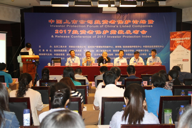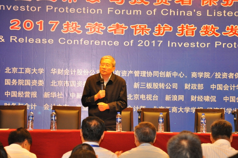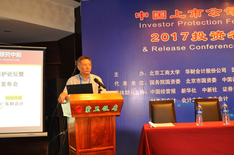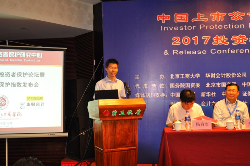 9月22日,我校商學院召開中國上市公司投資者保護論壇暨2017投資者保護指數(shù)發(fā)布會,連續(xù)第八次發(fā)布中國上市公司投資者保護指數(shù),同時第二次發(fā)布新三板投資者保護指數(shù)。我校副校長謝志華,財政部會計司、企業(yè)司原司長劉玉廷,國家發(fā)改委司長宋承敏,中國保險資產管理業(yè)協(xié)會副秘書長陳國力出席發(fā)布會并做主題演講。監(jiān)管部門、投資機構、上市公司等相關單位,財經、新華社、中新社等在京媒體,會計研究等專業(yè)期刊,以及在京高校和科研機構的代表共140余人參加了發(fā)布會。發(fā)布會由商學院教授楊有紅主持,商學院黨委書記毛新述教授出席發(fā)布會并致辭。