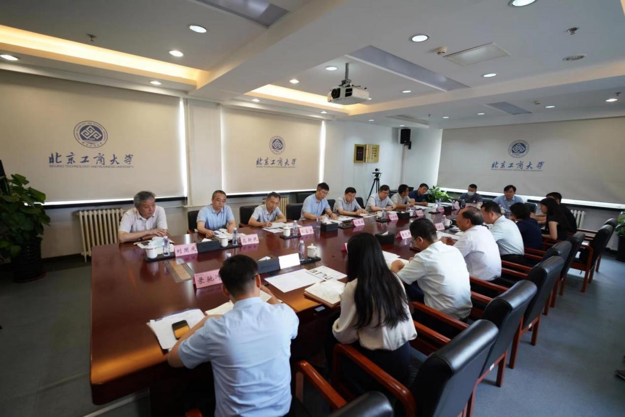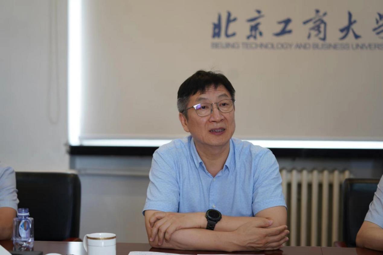 交流座談會上,黃先開代表學校對孫其軍一行到校調研指導表示熱烈歡迎,并對市教委長期以來對學校的大力支持表示感謝。黃先開對學校兩校區的功能定位、規劃布局進行了匯報,并詳細介紹了學校的歷史沿革、辦學特色、目標定位,以及近年來學校在人才培養、學科建設、科學研究、社會服務等方面取得的成績。他指出,學校已明確“商科做強、工科做精、工商融合、雙輪驅動”的學科專業布局定位,正舉全校之力創建“雙一流”學科。學校錨定“食品進全國前三、商科數字化轉型”的發展目標,以數字化轉型、信息化賦能,推動學校“雙一流”創建和高水平研究型大學建設,更好服務國家戰略和首都經濟社會發展。