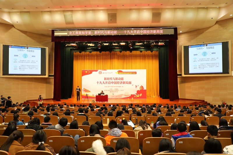 11月7日晚,學校2017級本科生致知學堂第八講在良鄉校區開講,這也是“首都高校百位名家共講十九大”活動之一。國務院發展研究中心產業經濟研究部副部長楊建龍教授受邀為同學們做了題為“新時代與新功能——十九大開啟中國經濟新局面”的報告。千余名2017級本科生到場聆聽,近兩千名師生及校友在線觀看了網絡直播。