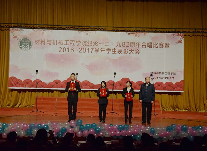 12月1日,材料與機械工程學(xué)院在良鄉(xiāng)校區(qū)舉行2016-2017學(xué)年表彰大會暨紀念“一二·九”運動82周年合唱比賽。學(xué)院領(lǐng)導(dǎo)、班主任、輔導(dǎo)員及學(xué)生參加表彰大會,并觀看合唱比賽。
