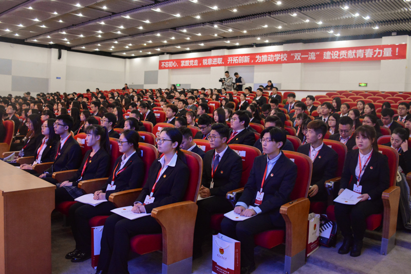 校黨委書記譚向勇在開幕式上講話。他指出,此次團代會的召開恰逢“一二·九”學生愛國運動82周年紀念日,正值全校師生深入學習宣傳貫徹黨的十九大精神之際,是全校團員青年政治生活中的一件大事,對推動我校共青團改革發展具有重要意義。譚書記指出,一直以來,學校黨委關心和支持共青團工作,青年師生既是國家的未來和希望,也是學校“雙一流”建設的主力軍和生力軍。我校共青團以“立德樹人”為根本任務,圍繞中心、服務大局,為學校發展做了大量卓有成效的工作,并提出共青團作為黨領導的先進青年的群團組織,要根據廣大青年的特點和需要,充分發揮共青團的突擊隊作用和聯系廣大青年的橋梁作用。他代表學校黨委向全校青年提出了三點希望:第一,堅定理想信念,認真學習貫徹黨的十九大精神;第二,深化改革創新,積極推動我校共青團事業發展;第三,加強學習實踐,不斷提高自身綜合素質。