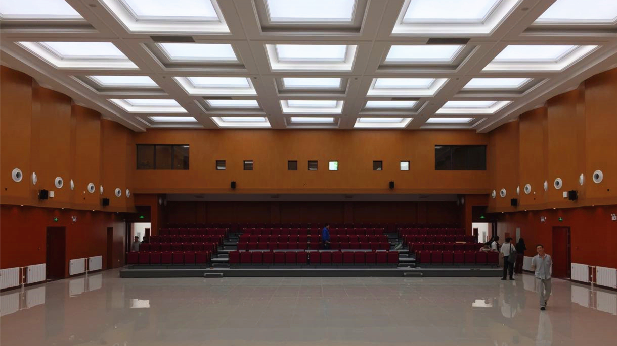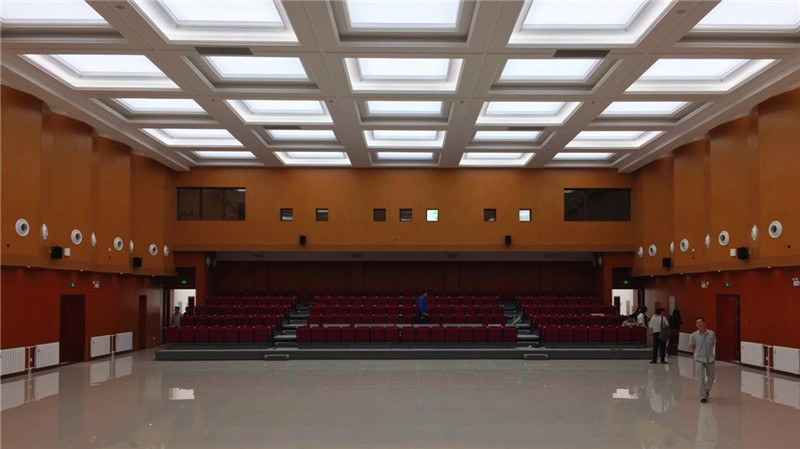 傳承建筑歷史,面向未來(lái)使用。項(xiàng)目保留建筑原有風(fēng)格,外觀修舊如舊,不僅滿足于外觀顏色及裝飾掛板的還原,同時(shí)根據(jù)檔案館查閱的禮堂老照片,采用現(xiàn)代節(jié)能窗還原外窗分割形式,營(yíng)造上世紀(jì)50年代建筑氣息;建筑內(nèi)配有現(xiàn)代化照明控制,采用大面積拉膜天花吊頂方式,可根據(jù)不同功能使用需求,調(diào)整舒適、均勻的照度;項(xiàng)目根據(jù)新規(guī)范配備多點(diǎn)位消防報(bào)警及響應(yīng)、消防排煙及消火栓系統(tǒng),提升建筑遇火情時(shí)的應(yīng)急處置能力;建筑內(nèi)預(yù)留有同聲傳譯管路與功能用房,后期相應(yīng)設(shè)備完善后可服務(wù)更高層次會(huì)議。