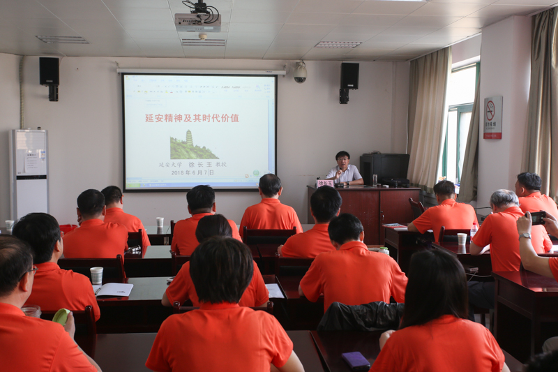 延安干部培訓學院徐長玉教授作《延安精神及其時代價值》的專題講座,就延安精神的科學內涵、主要內容、時代價值,以及如何弘揚延安精神加強黨性修養進行了深入的闡述和講解,使大家對延安精神的主要內容——堅定正確的政治方向,解放思想、實事求是的思想路線,全心全意為人民服務的根本宗旨,自力更生、艱苦奮斗的創業精神有了深刻的理解。