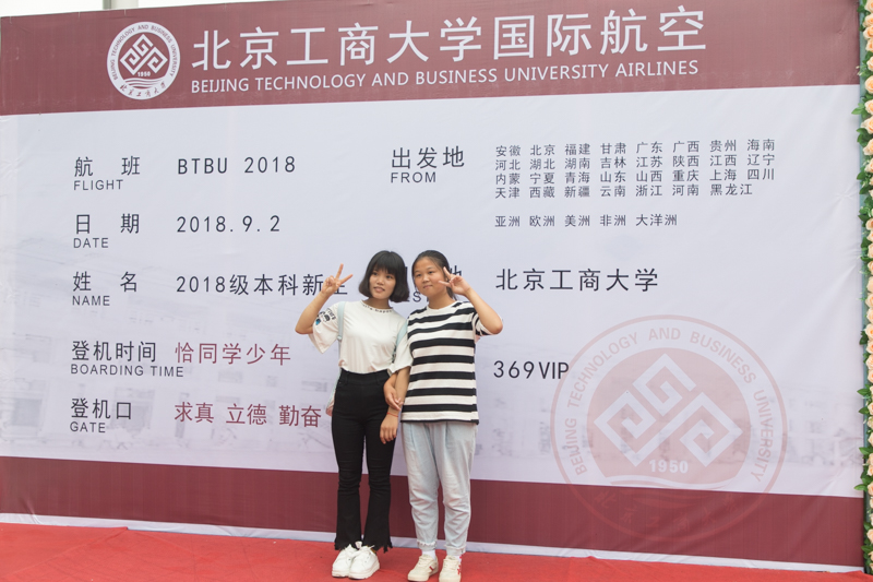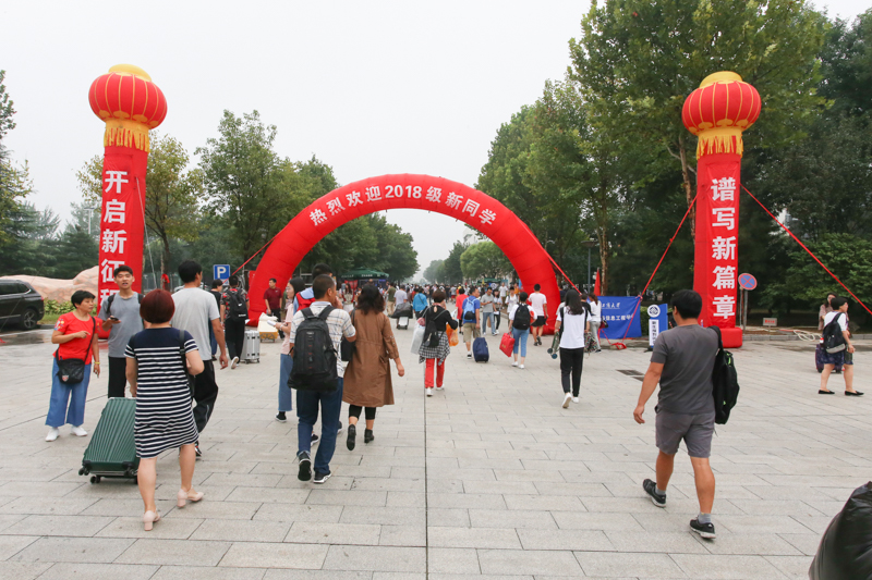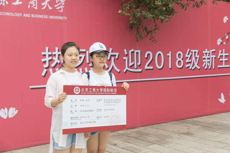 校門口“熱烈歡迎2018級新同學””“2018我們入學啦” “我愛北工商”“開啟新征程、譜寫新篇章”的紅色迎新拱門、燈柱和條幅等顯得格外喜慶和醒目。