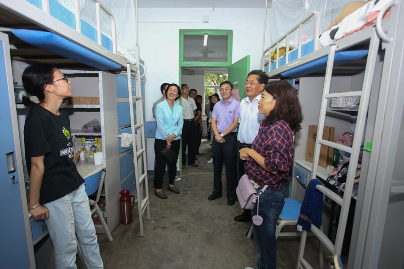學校領導孫寶國、張德玉、李朝鮮、張耘、鄭文紅、方德英、董竹娟來到迎新現場,了解新生報到注冊情況,親切詢問工作人員迎新工作情況,走進宿舍與新生和家長們熱情交流,鼓勵同學們盡快適應大學生活。