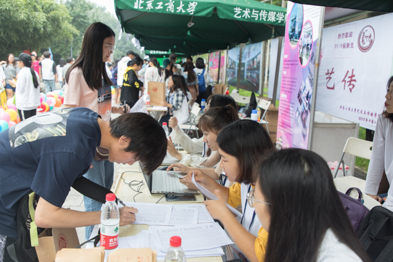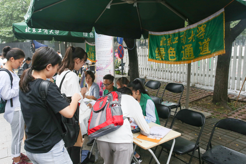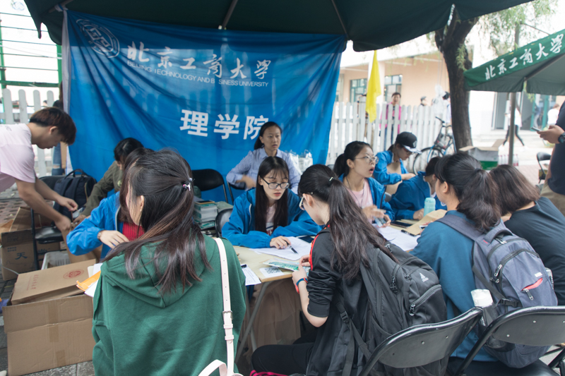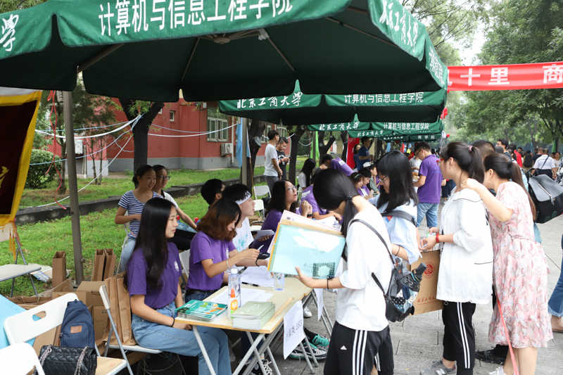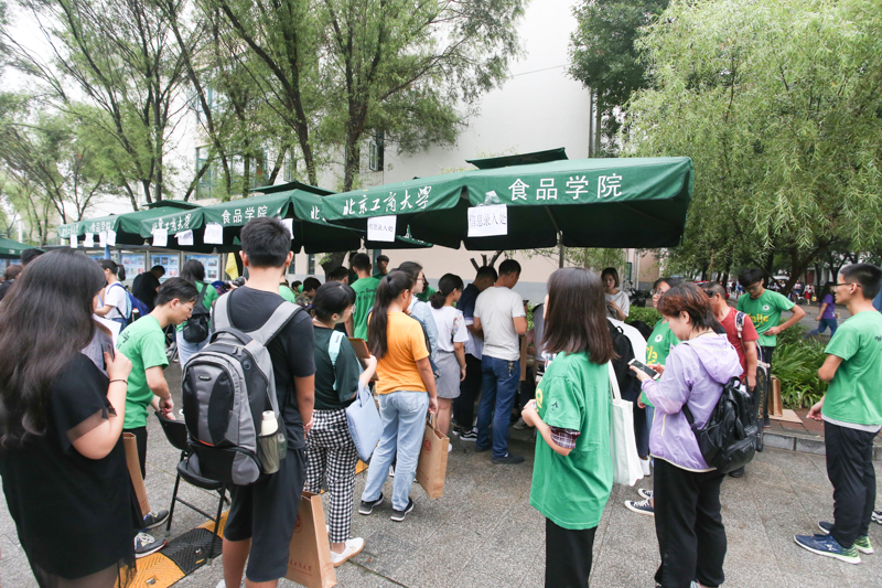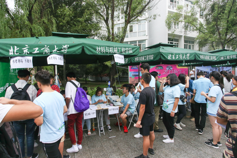食品學院只有大一新生在良鄉校區學習,為了能夠幫助新生們順利完成報到,學長學姐們一大早從阜成路校區趕過來為新生們提供幫助。理學院、材料與機械工程學院和計算機與信息工程學院的報到處,新生們在老師和學長學姐的引導幫助下有條不紊地進行著報到;經濟學院漂亮的氣球裝飾是熙攘人群的一抹亮色;商院的身著老虎玩偶服的激萌志愿者很大程度的幫助新生們緩解了緊張的心情,黨員愛心工作站也引來新生和家長關注。