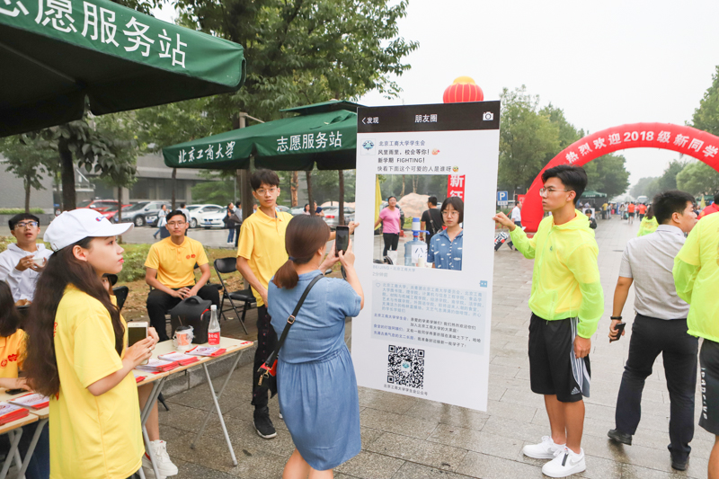 法學院在開學前就舉辦了直播逛校園的活動,給每位新生的宿舍門上都貼了溫暖的寄語,準備了新老生見面會來幫助新生熟悉法學院這個大家庭;外國語學院迎新工作圍繞“安心,暖心,貼心”三心原則,結合學院“新相見,夢飛young” 迎新主題,打造學院2018特色迎新工作,學院還為新生們搭建Lucky Pick祝福墻,希望能夠將外語精神滲透進學生生活中的點滴;藝術與傳媒學院的“北工商校園集章活動”帶著萌新們踩點各個教學樓,迅速熟悉校園,學院設計專業教師和學生共同制作的報到指南在展示專業特色的同時,也讓新生們更加了解和熱愛自己的專業。剛剛打卡回來的設計183 李煒瀅告訴記者:“學院設計的這個指南很漂亮,走了一圈,感覺學校環境很好。”