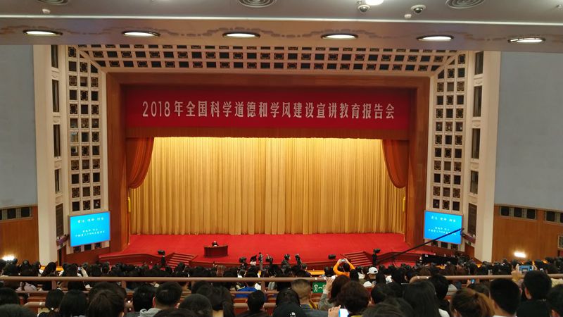 10月15日,由中國科學技術協會、教育部、中科院、社科院、工程院、自然科學基金委、北京市人民政府主辦的2018年全國科學道德和學風建設宣講教育報告會在人民大會堂召開。我校組織研究生新生和老師代表共計96人參加了此次宣講教育報告會。