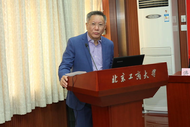 下午主題報告階段由我校經濟學院副院長郭馨梅教授主持。北京財貿職業學院京商流通戰略研究院院長賴陽研究員、河北大學資產評估研究所所長郭子雪教授、北京物資學院消費經濟研究中心主任潘建偉教授、北京航空航天大學應用經濟系主任方虹教授、沁坤大宗農產品現貨電子交易市場股份有限公司鐘曉瑜董事長、北京工商大學貿經系副主任李麗教授分別從重構零售業態、京津冀流通效率評價、農產品價格傳導機制、參與國際標準的制定、批發市場轉型升級、五大發展理念助推流通業高質量發展等方面作了精彩發言。在主題報告之后是《中國流通經濟》筆會和自由交流階段,由洪濤教授主持。《中國流通經濟》副主編林英澤介紹了雜志的欄目及對作者投稿的要求,商務部市場建設司馬戰軍處長、北京工商大學經濟學院胡俞越教授、中國商業聯合會專家工作委員會副主任李生分享了自己關于經濟形勢的變化與流通業高質量發展的觀點。