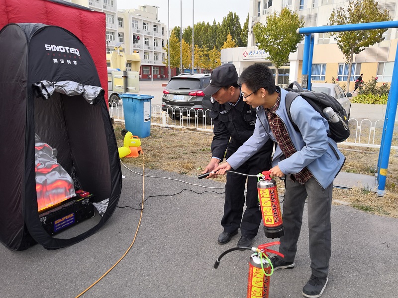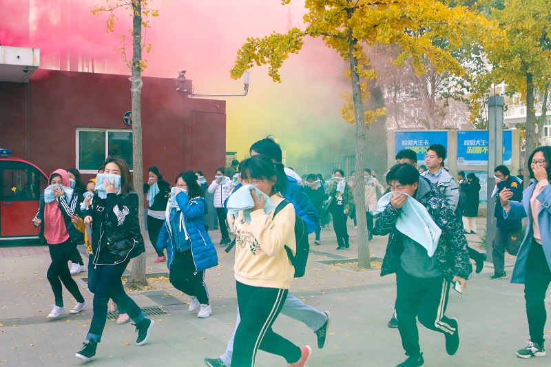 此次活動旨在全面實施“平安校園”建設提升工程,加強對“消防安全百日會戰(zhàn)專項行動”的宣傳教育,提高全校師生防火安全意識和火場逃生自救的能力,確保學校秋冬季防火安全。14時整,消防疏散演習正式開始,消防警報同時鳴響。模擬接到火災報警后,微型消防站迅速到達火場實施滅火,參演學生從各組團學生宿舍快速疏散到集結區(qū),完成了火災逃生疏散,展示了學校在學生安全教育工作的良好成果。拱辰消防中隊消防員為參演師生講解滅火器使用方法,并現(xiàn)場演示了利用消防水帶撲救火災流程。保衛(wèi)處在疏散集結地域內設置了“消防逃生體驗帳篷”與“模擬滅火實訓設備”,供學生實地體驗疏散逃生和滅火器材使用。隨后,參演師生現(xiàn)場進行了滅火演練實操。