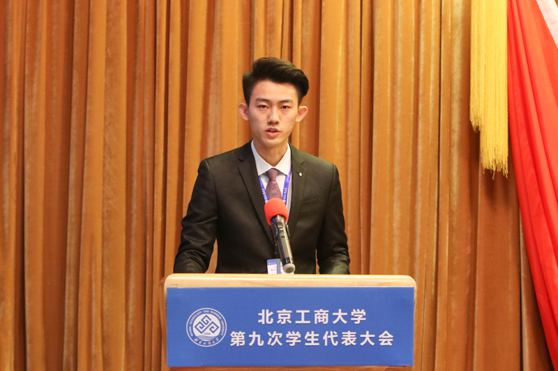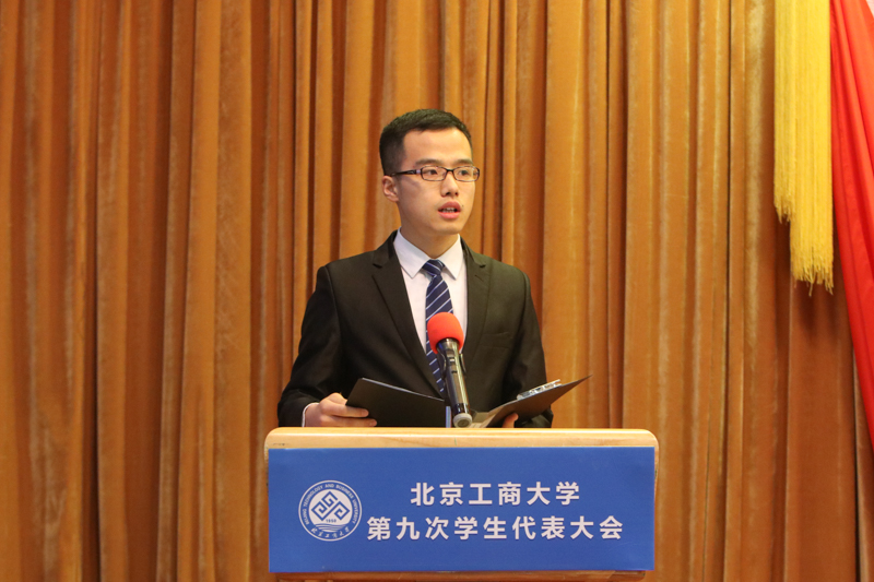 校學生會主席陸聰同學代表北京工商大學第八屆學生會向第九次學生代表大會作了題為《牢記使命,永跟黨走,開拓進取,勇擔重任——為推進學校“雙一流”建設匯聚青春力量》的報告。報告對我校上一屆學生會工作進行了系統、全面的總結,并對我校學生會今后的工作進行了規劃,明確了工作思路和工作任務。校學生會副主席廖英琛同學代表提案工作組向大會作了提案工作報告,提案覆蓋范圍廣泛,充分體現了同學們的責任感和使命感。