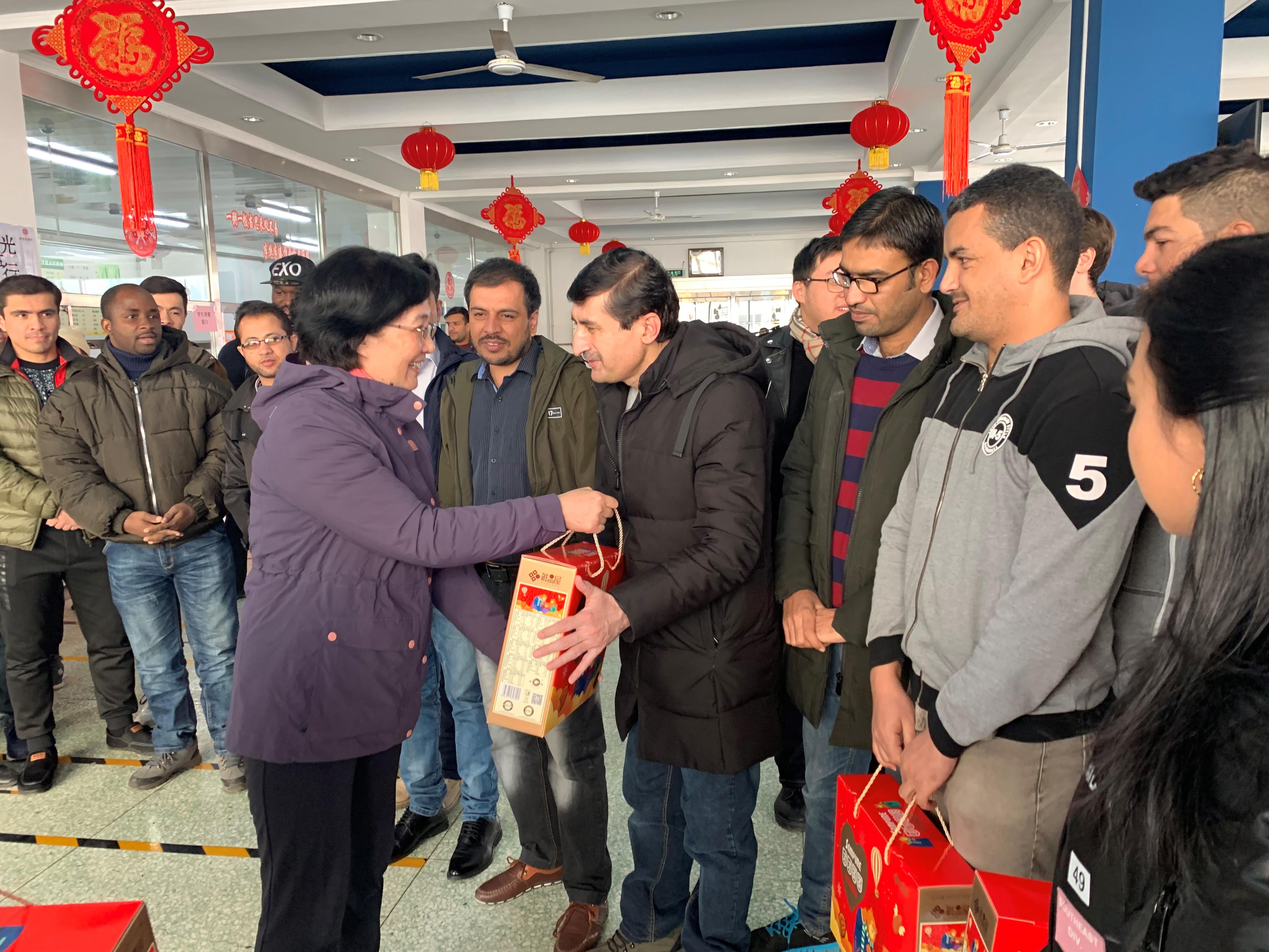 學校辦公室主任王小藝、國際交流與合作處處長劉影、學生處處長呂素香、保衛處處長馬韜光、后勤基建處處長吉濤、后勤基建處副處長楊會如、付仕倫等陪同慰問。