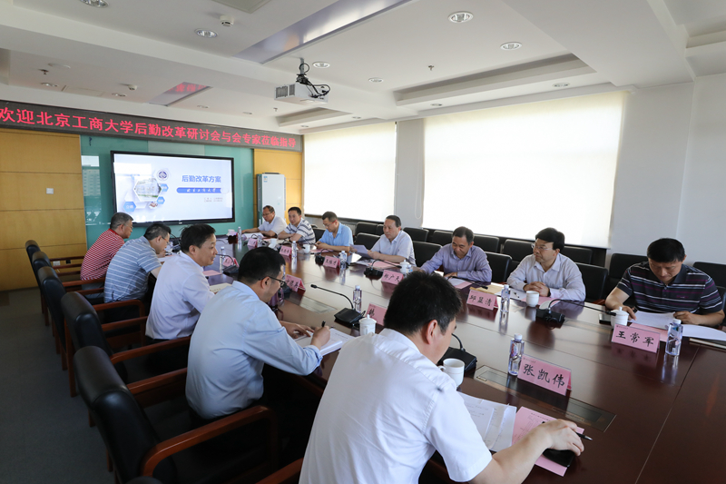 公共事務處處長韓軍向與會專家匯報了《北京工商大學后勤改革方案(討論稿)》,就學校后勤現狀與問題、改革目標與要求、改革內容與措施和所需政策與支持四方面作了細致介紹,隨后與會專家針對此方案進行了研討,從理論和實踐多個方面提出了許多真知灼見。