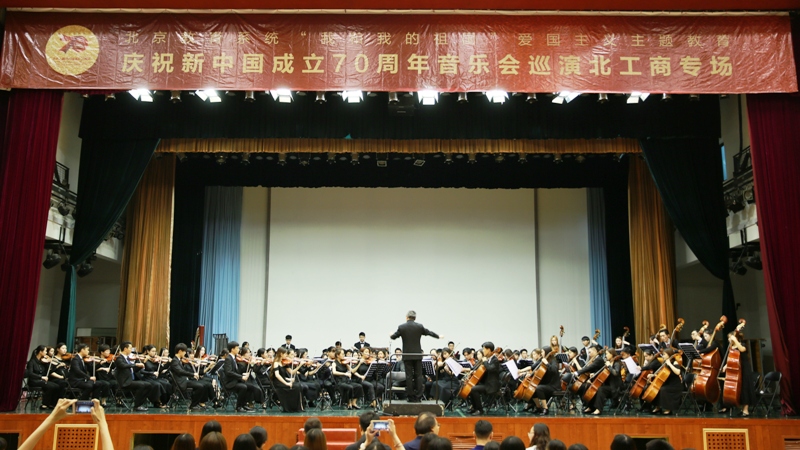 6月12日晚,由北京市委教育工委指導、中央音樂學院演出的北京教育系統“我和我的祖國”愛國主義主題教育——慶祝新中國成立70周年音樂會巡演北工商專場在學校良鄉校區舉辦,中央音樂學院學生工作部副部長劉琦、管弦系黨支部書記陳光等帶隊蒞臨現場,全校1200余名師生共同觀看了演出。本次音樂會也是學校慶祝新中國成立70周年“我和我的祖國”愛國主義主題教育系列活動之一。