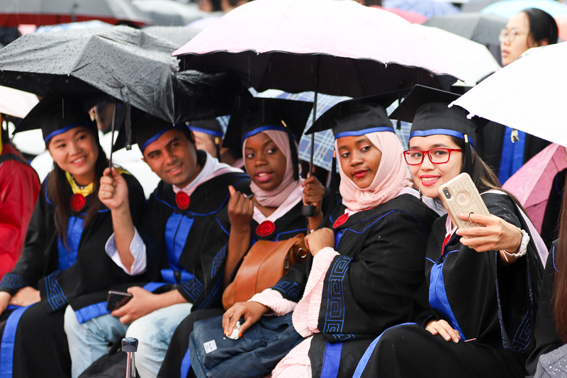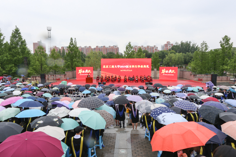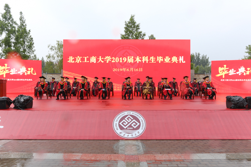 桃李芳菲,碩果累累。6月16日上午,學(xué)校2019屆本科生畢業(yè)典禮在良鄉(xiāng)校區(qū)求知廣場隆重舉行。學(xué)校領(lǐng)導(dǎo)黃先開、孫寶國、張德玉、謝志華、張?jiān)拧⑧嵨募t、賈英民、方德英、董竹娟與2019屆畢業(yè)生一同參加了難忘的雨中畢業(yè)典禮。典禮由學(xué)校黨委副書記張德玉主持。校學(xué)位委員會成員、各學(xué)院領(lǐng)導(dǎo)、系主任、畢業(yè)班輔導(dǎo)員、班主任及部分家長代表參加畢業(yè)典禮。