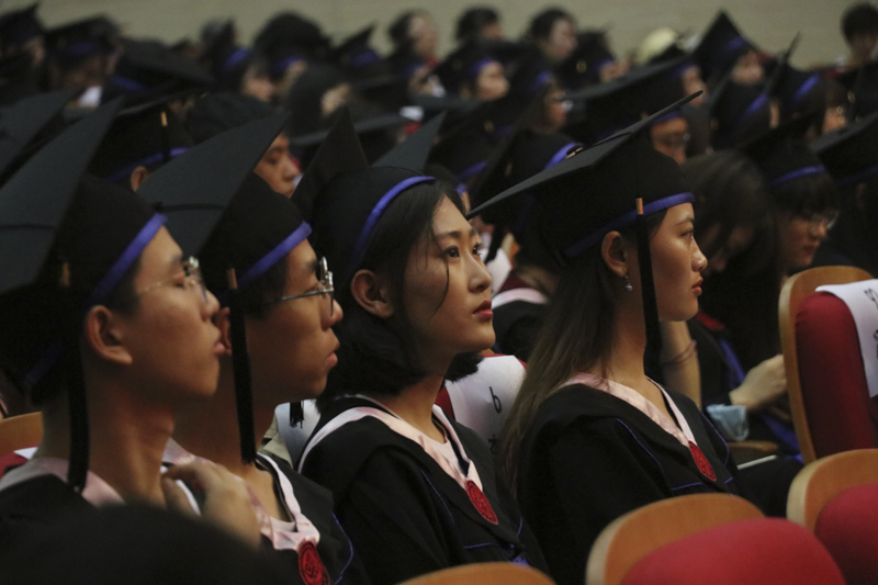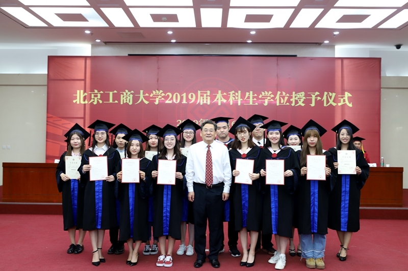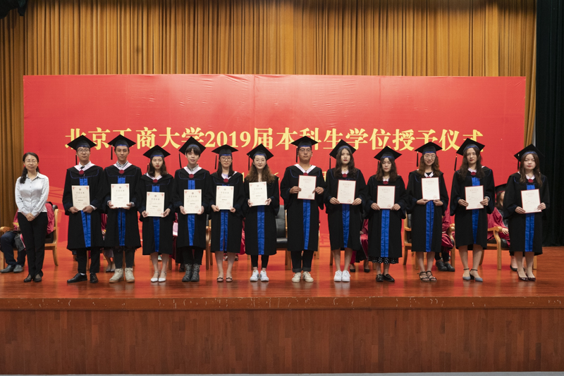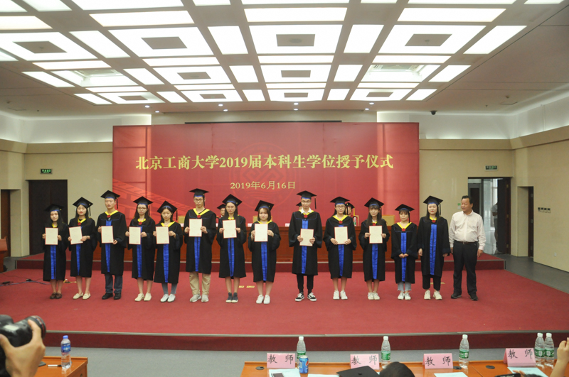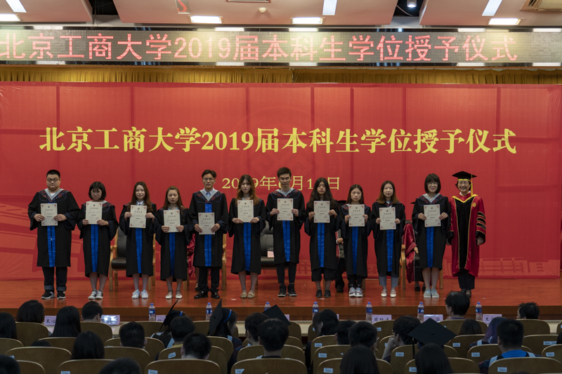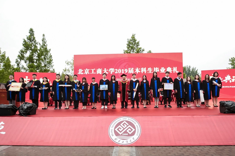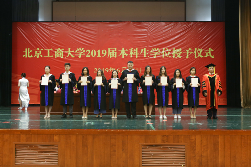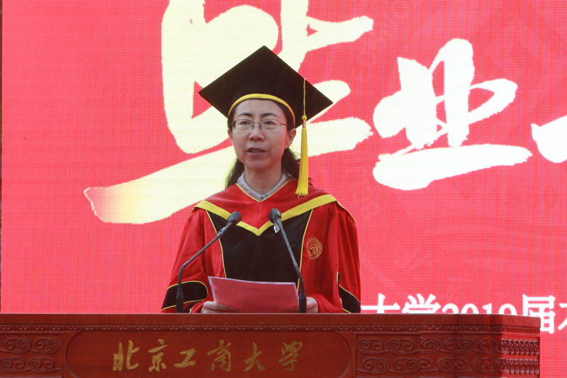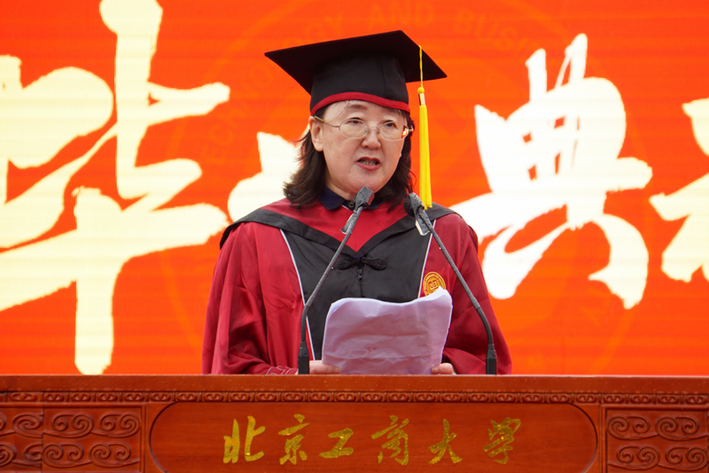 副校長謝志華宣讀《北京工商大學(xué)關(guān)于2019屆本科生畢業(yè)及學(xué)士學(xué)位授予的決定》,黨委副書記董竹娟宣讀《北京工商大學(xué)關(guān)于表彰2019屆優(yōu)秀本科畢業(yè)生的決定》。今年,我校共有2369名本科生準(zhǔn)予畢業(yè),2335名本科生獲得學(xué)士學(xué)位,152人獲得“北京工商大學(xué)優(yōu)秀畢業(yè)生”榮譽(yù)稱號,133名本科畢業(yè)生榮獲“北京市優(yōu)秀畢業(yè)生”榮譽(yù)稱號。