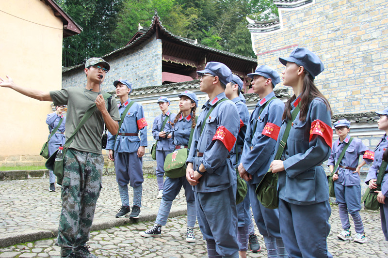 全國青少年井岡山革命傳統教育基地教師羅曦帶領實踐團成員來到“三灣改編”情景教學課堂進行現場授課,帶領實踐團成員圍繞“黨的領導是革命事業成功的根本保證”這一主題探討“三灣改編”的時代背景、改編舉措以及深遠影響。理論學習之余,羅曦老師帶領實踐團成員模擬“三灣改編”中“縮師為團”機制,重新編排實踐團隊伍,縮團為班,建立起班級各項職務,并讓各班自主設計和展示班名、班歌、班旗、以及班級口號和動作。全國青少年井岡山革命傳統教育基地辦公室主任滕永琛為實踐團作《井岡山斗爭與井岡山精神》專題講座,生動展現了井岡山艱苦卓絕的革命歲月以及為了革命取得勝利不惜獻出寶貴生命的老一輩無產階級革命家們的大無畏精神。基地還邀請抗戰英雄李兆麟之女張卓亞、進藏老兵夏川之子蘆繼兵參加訪談講座,通過現場采訪革命后代的形式,向在座師生展現老一輩革命家的初心和使命。