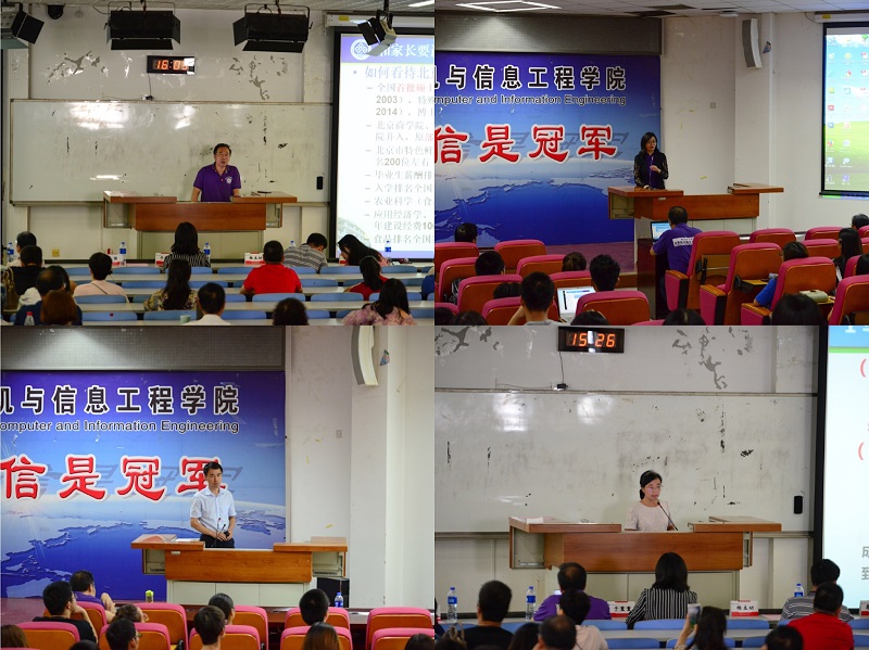31日下午15時許,學(xué)院領(lǐng)導(dǎo)、各班班主任以及輔導(dǎo)員老師參加了新生家長會,本次家長會由曹璐婷老師主持。院長于重重教授為各位家長介紹學(xué)院和各專業(yè)具體情況,向家長們展示了學(xué)院現(xiàn)狀、師資隊(duì)伍、本科教學(xué)狀況、學(xué)科競賽以及2019級新生錄取情況等內(nèi)容。副院長廉小親教授就教學(xué)管理、學(xué)業(yè)等方面進(jìn)行說明,介紹了本科生培養(yǎng)條例、畢業(yè)要求與學(xué)業(yè)要求、保研考研以及出國條件等方面的具體內(nèi)容。黨委副書記楊立功老師從學(xué)生工作隊(duì)伍、學(xué)生管理工作、大學(xué)生活可能遇到的困境以及違紀(jì)處分管理規(guī)定等方面進(jìn)行了詳細(xì)講解。學(xué)院黨委書記蔡強(qiáng)教授發(fā)表總結(jié)講話,他先是對我校在各方面的排名進(jìn)行了展示,然后介紹了本科生以及研究生畢業(yè)后的就業(yè)情況,強(qiáng)調(diào)了教學(xué)教育培養(yǎng)的重要性,建議家長督促學(xué)生發(fā)展個人特長、不放縱自己、不沉迷游戲,飽含對新一屆學(xué)生全面發(fā)展的期望。