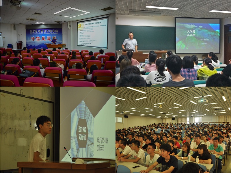 院長于重重教授首先向新生介紹學(xué)院整體情況,教導(dǎo)新生如何邁出大學(xué)第一步。副院長廉小親教授就教學(xué)管理進(jìn)行說明,如取得學(xué)士學(xué)位績點(diǎn)要求、獎學(xué)金獲得和保研條件、專業(yè)分流相關(guān)信息、“三六九”目標(biāo)及相關(guān)競賽等。黨委副書記楊立功老師介紹學(xué)生管理工作,內(nèi)容涉及學(xué)生工作隊(duì)伍、學(xué)生管理工作、大學(xué)生活可能遇到的困境以及違紀(jì)處分管理規(guī)定等方面,細(xì)致詳盡。黨委書記蔡強(qiáng)教授對新同學(xué)表示熱烈歡迎,強(qiáng)調(diào)同學(xué)們需要明確自身目標(biāo),期望在大學(xué)成為什么樣的人、未來希望走怎樣的路等等,并代表學(xué)院表示對新生努力學(xué)習(xí)的大力支持。輔導(dǎo)員老師向同學(xué)們明確了大學(xué)生活中的重要事項(xiàng),良好的大學(xué)生活環(huán)境是學(xué)習(xí)的基礎(chǔ),也希望同學(xué)們遵守校園安全等各項(xiàng)規(guī)定要求,度過難忘的大學(xué)生活。