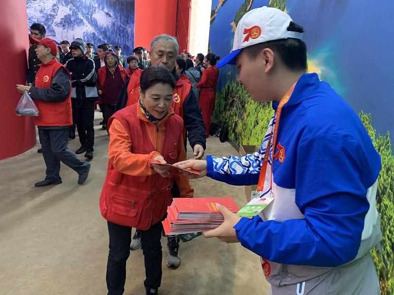 在志愿服務期間,共有83名志愿者被分別安排在“1954憲法墻”、“1955軍銜制展柜”以及“1999神舟一號返回艙”等崗位上。由于客流量大以及場景的特殊意義,許多游客停滯在場景前,造成人流集中、瀏覽路線堵塞,志愿者們積極引導,維持秩序,保證參觀人員順利通行。除此之外,他們還有一項重要工作就是守護這些代表著國家重大發展成就的展品,避免出現被涂鴉、觸摸敲打損壞等情況。他們在平凡的崗位上默默守護著神圣與珍貴的展品,守護著屬于祖國那些光榮歲月的印跡!