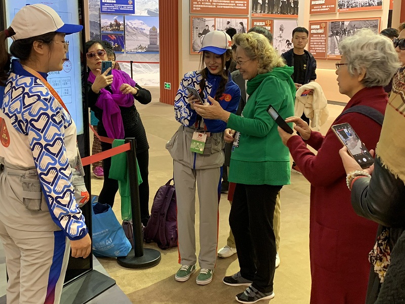 在“生日天氣查詢”、“1977年準考證打印”等崗位分配有84名志愿者。志愿者們主要負責協助游客使用互動儀器,保證參觀者的體驗。“1977年準考證打印”吸引的大多是中老年群體,他們中的很多人都是1977年高考的經歷者,志愿者們協助拍照并耐心地教授他們如何保存“準考證”,游客們也和志愿者們感慨地聊起了當年的高考經歷;在“未來生活館體脂秤”互動崗位上,志愿者服務了一位聾啞游客,以出色的反應以及耐心地服務,利用手機打字為游客解答問題,事后志愿者張凌浩感慨:“看到他們理解的笑容和遠去的背影,心里百感交集,面對他們無法正常表達的那種無助,讓我一瞬間懂得了志愿者的意義。”