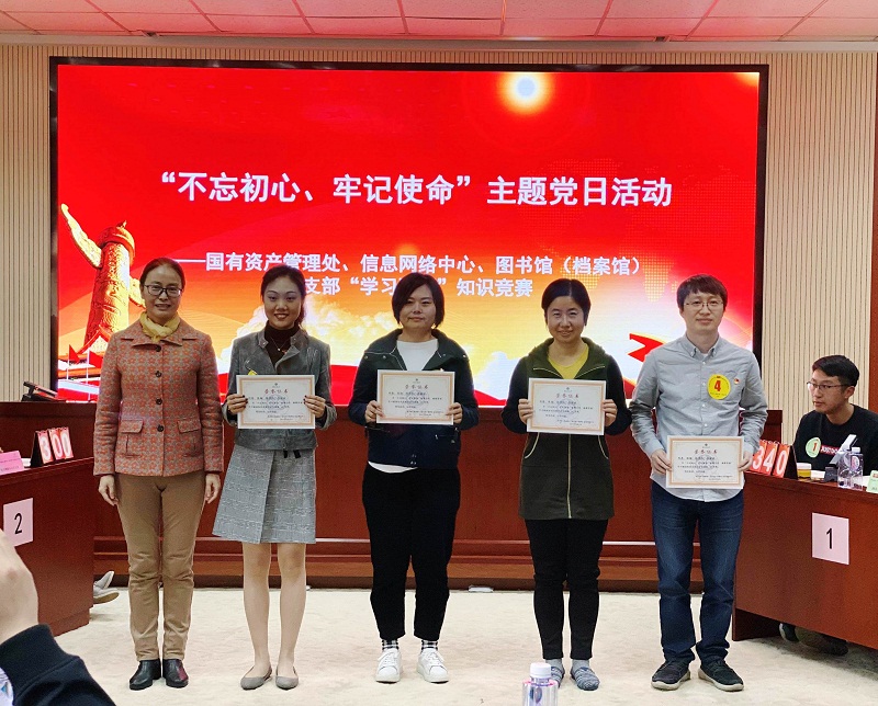 為深入學(xué)習習近平新時代中國特色社會主義和黨的十九大精神,切實開展“不忘初心、牢記使命”主題教育活動,10月23日下午,圖書館(檔案館)、國有資產(chǎn)管理處、信息網(wǎng)絡(luò)中心黨支部聯(lián)合開展“學(xué)習強國”知識競賽。