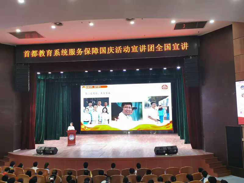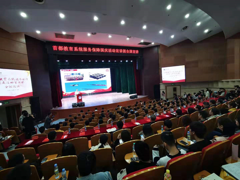 本次宣講集中展示了首都教育系統(tǒng)在服務(wù)保障國慶活動中涌現(xiàn)出來的榜樣人物和感人事跡,以鮮活的事例和典型的人物為載體,把新中國成立70周年慶祝活動這堂新中國歷史課、愛國主義教育課、新時代的思政課講實講透、落細(xì)落實,激發(fā)了大學(xué)生的愛國主義情懷,達(dá)到了預(yù)期目標(biāo)。