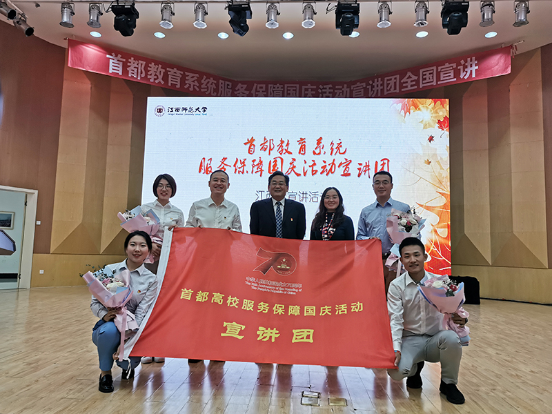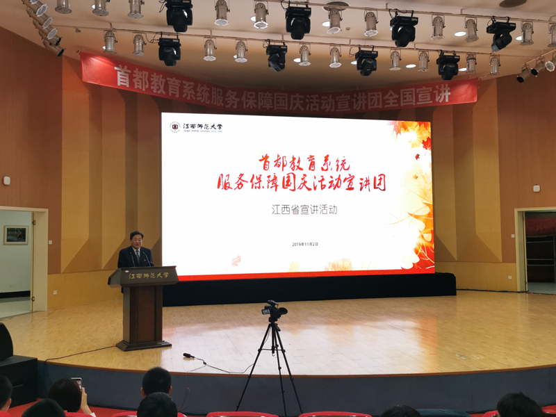 為貫徹落實中央關(guān)于國慶活動總結(jié)的指示精神,教育部會同北京市組建首都教育系統(tǒng)服務(wù)保障國慶活動宣講團(tuán)分赴全國三十個省市進(jìn)行宣講,旨在通過宣講以鮮活的事例、典型的人物為載體,對全國廣大高校師生開展一次生動的愛國主義黨課,一次活潑的思政教育課,激發(fā)大學(xué)生的愛國主義情懷,堅定理想信念。按照統(tǒng)一安排,我校與北京林業(yè)大學(xué)一起組成宣講團(tuán)于10月31日至11月3日赴江西省宣講。