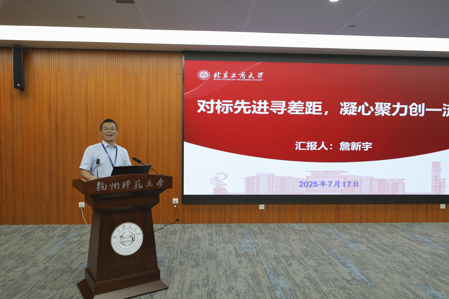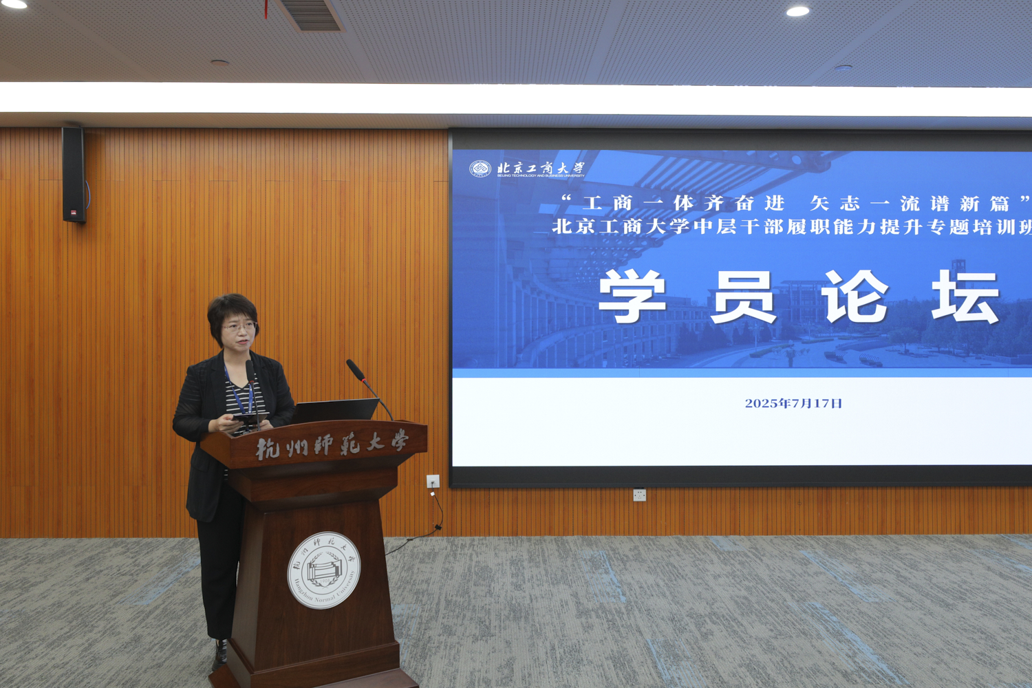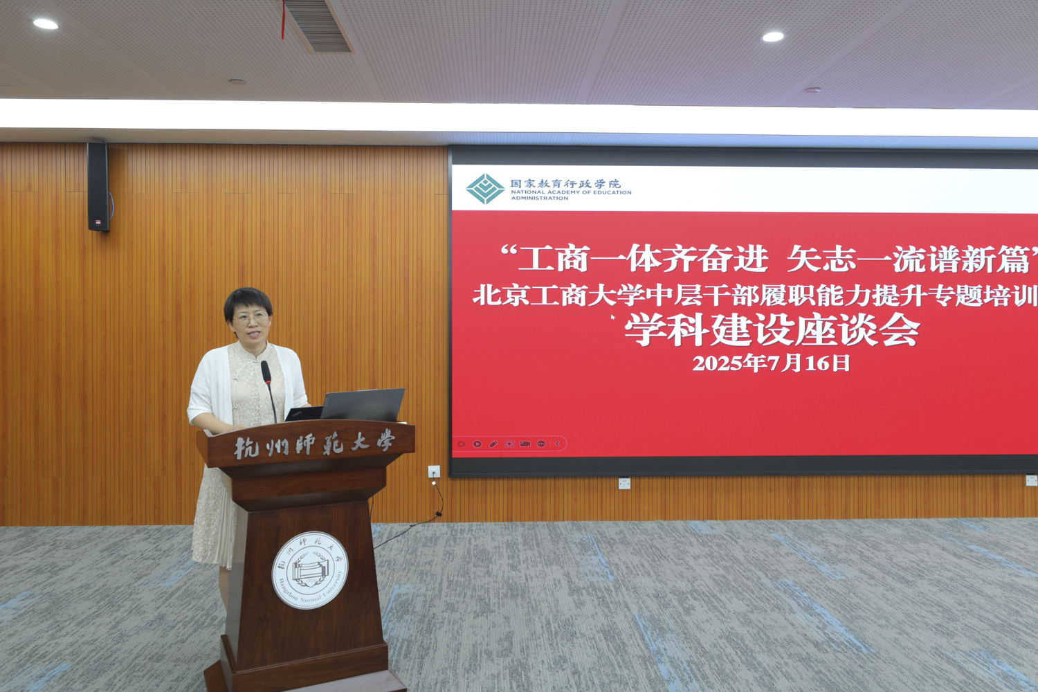 在浙江工業(yè)大學(xué),參訓(xùn)學(xué)員先后參觀了莫干山研究院產(chǎn)業(yè)創(chuàng)新園、綠色化學(xué)合成與轉(zhuǎn)化技術(shù)全國重點(diǎn)實(shí)驗(yàn)室和地理信息學(xué)院展廳,了解了浙江工業(yè)大學(xué)在校地合作以及產(chǎn)學(xué)研用一體發(fā)展方面的有效做法和先進(jìn)經(jīng)驗(yàn)。隨后,培訓(xùn)班一行與浙江工業(yè)大學(xué)有關(guān)人員開展座談交流。浙工大副校長鄭華均以《創(chuàng)新內(nèi)部治理機(jī)制 推進(jìn)地方高校高質(zhì)量發(fā)展》為題作報(bào)告,深度分析高校內(nèi)部治理體系與高質(zhì)量發(fā)展存在的不適之處,并分享了浙工大在創(chuàng)新內(nèi)部治理方面的思路和舉措。雙方圍繞高校內(nèi)部治理相關(guān)問題展開交流討論。宋曉欣為座談會作總結(jié)講話。她對浙江工業(yè)大學(xué)的熱情接待和傾情分享表示感謝。她談到,浙工大既有敢為人先的卓越追求,也有腳踏實(shí)地的落實(shí)路徑;有敢闖敢試的創(chuàng)新思維,也有敢啃硬骨頭的堅(jiān)定決心,有深耕內(nèi)部治理的先進(jìn)做法,也有校地共建的全局視野。同為地方高校,北工商將把浙工大的先進(jìn)經(jīng)驗(yàn)帶回去,將此行學(xué)習(xí)成果轉(zhuǎn)化為助力學(xué)校建設(shè)發(fā)展的強(qiáng)大動能。