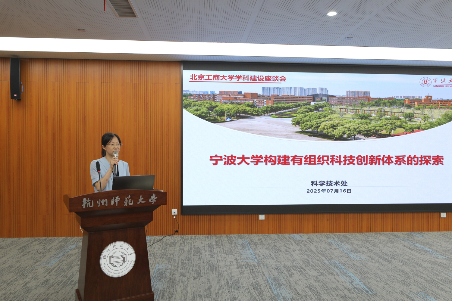 在學(xué)科建設(shè)座談會上,寧波大學(xué)發(fā)展規(guī)劃處處長汪盛科、學(xué)科建設(shè)處副處長(主持工作)高超、科學(xué)技術(shù)處副處長廖奇分別以《以學(xué)科建設(shè)為統(tǒng)領(lǐng),精心編制“十五五”規(guī)劃》《全面構(gòu)建一流學(xué)科體系,奮力提升學(xué)科建設(shè)水平——寧波大學(xué)學(xué)科建設(shè)情況》和《寧波大學(xué)構(gòu)建有組織科技創(chuàng)新體系的探索》為題作報(bào)告,立足本職分享了寧波大學(xué)的工作經(jīng)驗(yàn)和取得成效。參訓(xùn)干部圍繞有關(guān)問題與三位主講人展開熱烈探討。