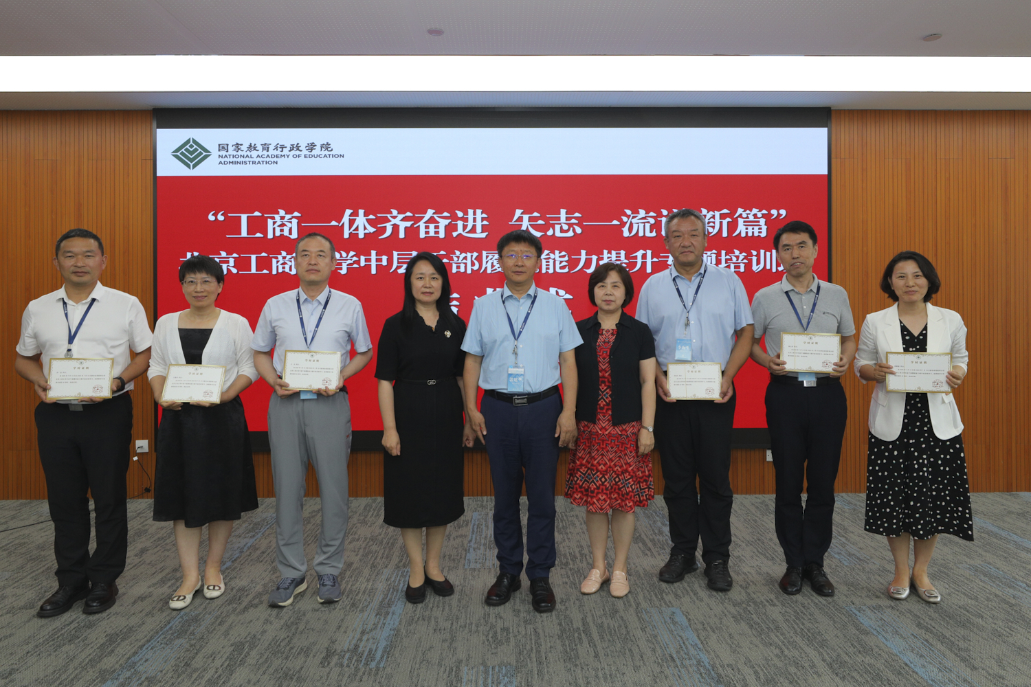 郭建華作總結(jié)講話。他代表學(xué)校向?yàn)槌晒εe辦此次培訓(xùn)付出辛勤努力的國家教育行政學(xué)院領(lǐng)導(dǎo)和老師表示衷心的感謝。他談到,本次培訓(xùn)班辦得及時(shí)且效果顯著,主要有三個(gè)特色:一是精心組織。本次培訓(xùn)是落實(shí)學(xué)校今年十大重點(diǎn)任務(wù)的重要舉措之一,學(xué)校黨委多次研究,黨委組織部精心籌備,目標(biāo)明確、規(guī)模空前。二是高端配置。依托國家級教育干部培訓(xùn)平臺,安排了最優(yōu)質(zhì)的師資力量和培訓(xùn)資源。三是交流互鑒。參訓(xùn)干部來自不同部門、院系和崗位,大家學(xué)習(xí)認(rèn)真,討論深入,交流充分,紀(jì)律嚴(yán)明,在達(dá)成培訓(xùn)目標(biāo)的同時(shí)展示出北工商干部的良好精神風(fēng)貌。