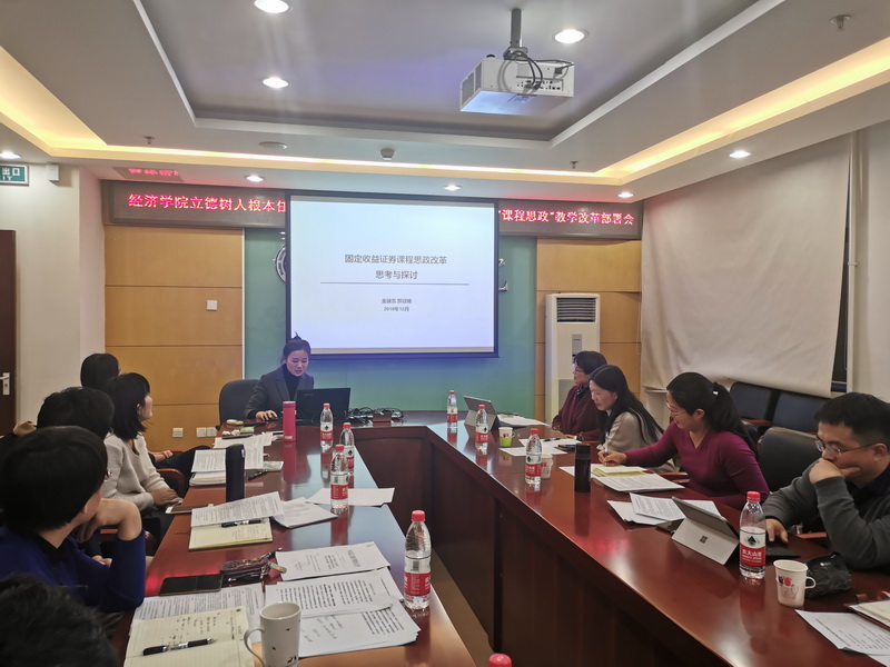 會(huì)議依照學(xué)?!蛾P(guān)于在“不忘初心、牢記使命”主題教育中開展立德樹人根本任務(wù)“大學(xué)習(xí)大討論大落實(shí)”的實(shí)施方案》要求,組織大家就習(xí)近平總書記有關(guān)立德樹人的講話進(jìn)行了學(xué)習(xí),對(duì)各黨支部下一步的工作提出了要求。呂素香解讀了《經(jīng)濟(jì)學(xué)院加強(qiáng)課程思政建設(shè)工作方案(討論稿)》,提出確立課程思政建設(shè)試點(diǎn)課程、探索課程思政實(shí)施路徑、建立課程思政案例庫(kù)等任務(wù)要求,力求依托經(jīng)濟(jì)學(xué)學(xué)科優(yōu)勢(shì),結(jié)合專業(yè)特色和課程特點(diǎn),從中國(guó)特色社會(huì)主義經(jīng)濟(jì)的歷史、規(guī)律出發(fā),以代表性案例和規(guī)范的經(jīng)濟(jì)學(xué)語(yǔ)言在課堂上傳播中國(guó)歷史文化,解讀中國(guó)經(jīng)濟(jì)發(fā)展,講好“中國(guó)故事”,通過課堂主渠道幫助學(xué)生樹立正確的歷史觀、世界觀、價(jià)值觀、人生觀。